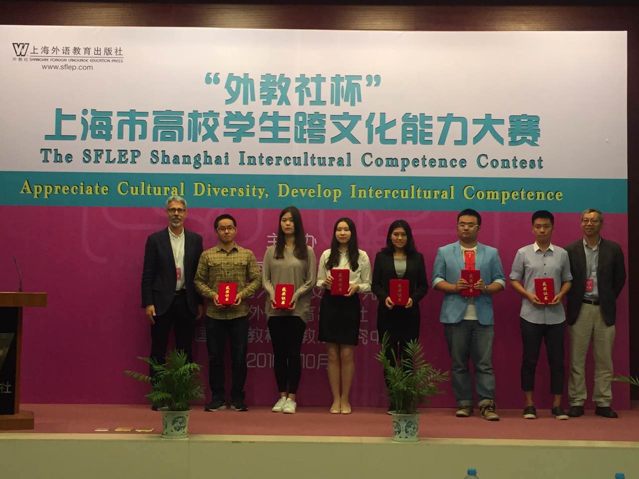 “外教社杯”上海市高校学生跨文化能力大赛由上海市外文学会、上海外国语大学跨文化研究中心、中国外语教材与教法研究中心、上海外语教育出版社联合举办。该大赛秉承“以赛促学、以赛促教、以赛促改”的宗旨,以搭建跨文化学习和交流的平台为目的,共同推动高校跨文化人才的培养。