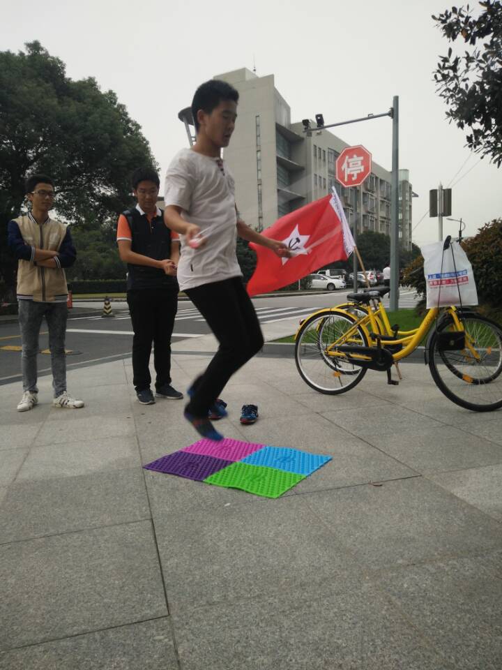 一支支队伍从世博广场出发,一路过关斩将。答题点关于长征的问题让选手们绞尽脑汁,加分点的小游戏也让他们学会合作。同学们因“长征”行相识,经过了1个多小时的团队作战,结下了宝贵的“革命友谊”。