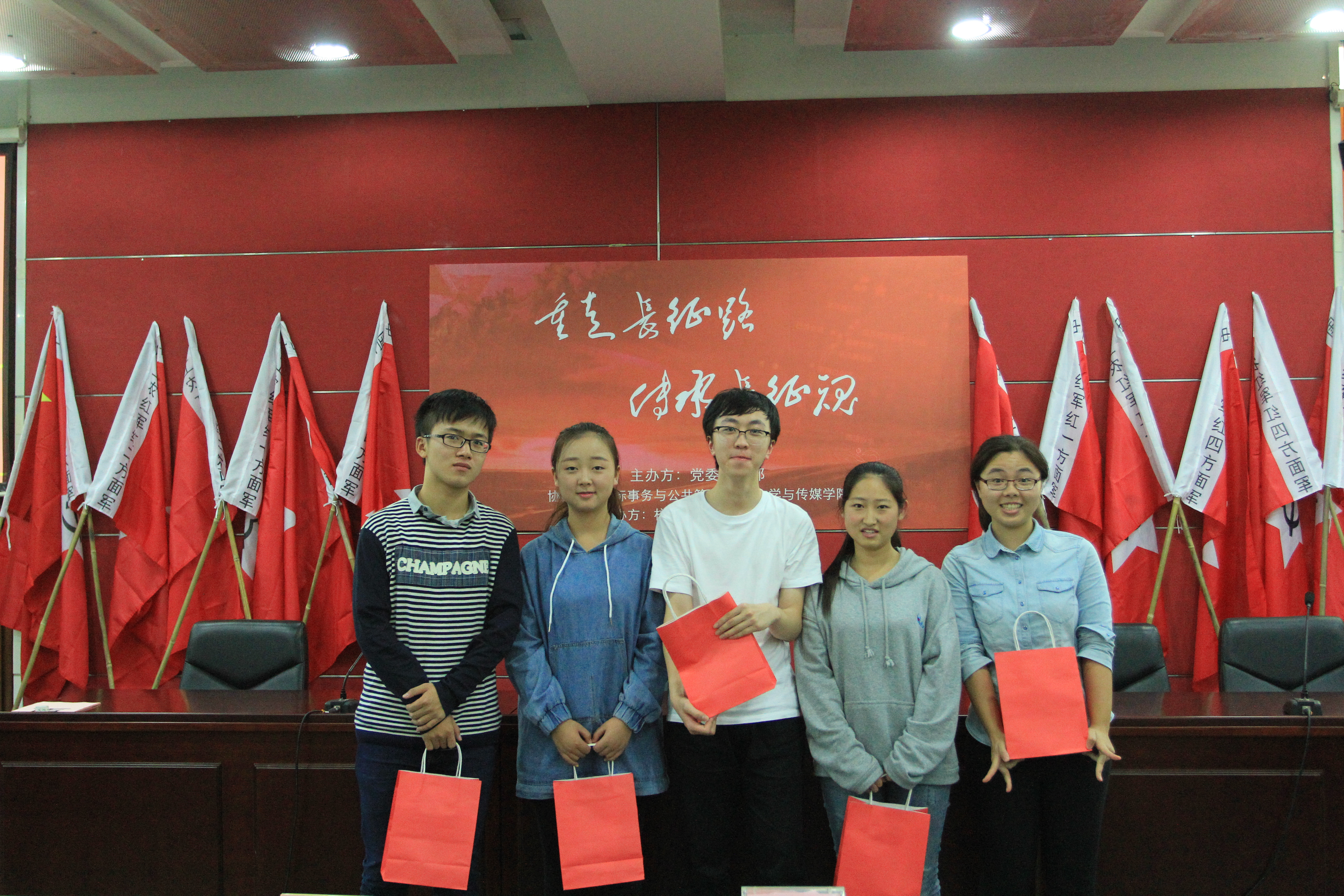 国际事务与公共管理学院党总支副书记张丽艳、文学与传媒学院党总支副书记周欣和党委宣传部张捷、晏晓东老师,共同为参赛选手和获奖代表颁奖。