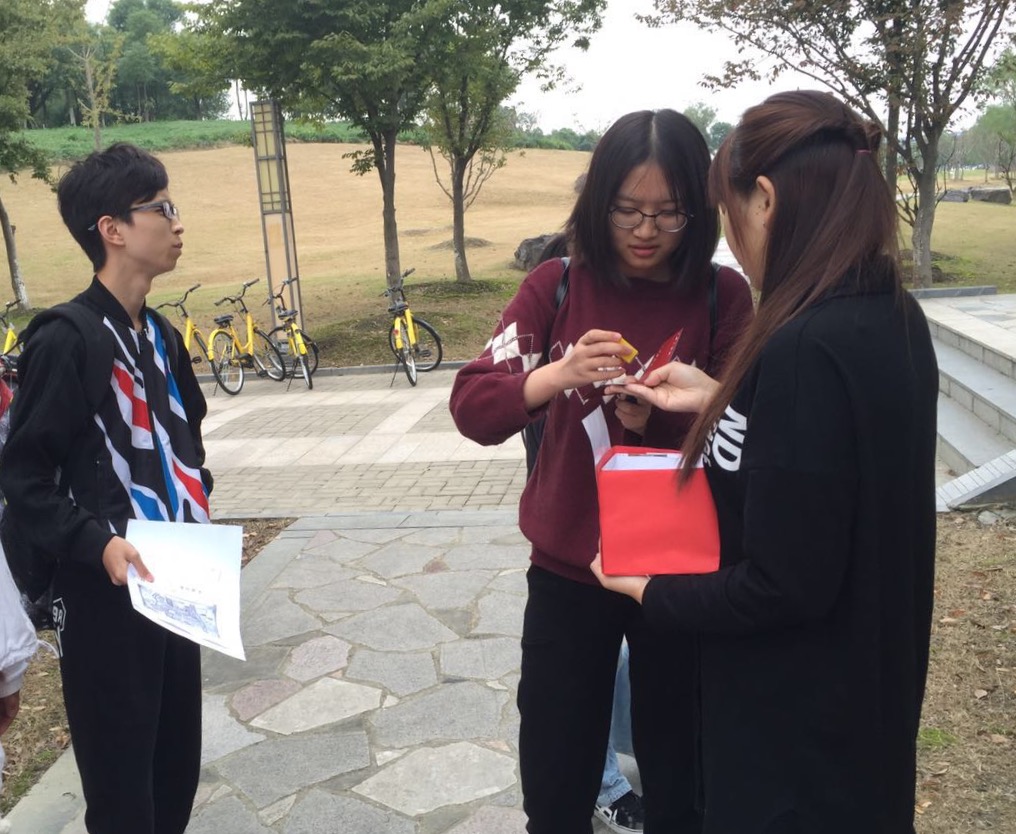 虽然降温,但是各个站点上的同学们还是坚守岗位。他们表示,看着“根据地”的红旗,仿佛置身于长征年代。同学们参加爱国主义活动的热情如此高涨,自己也干劲十足。