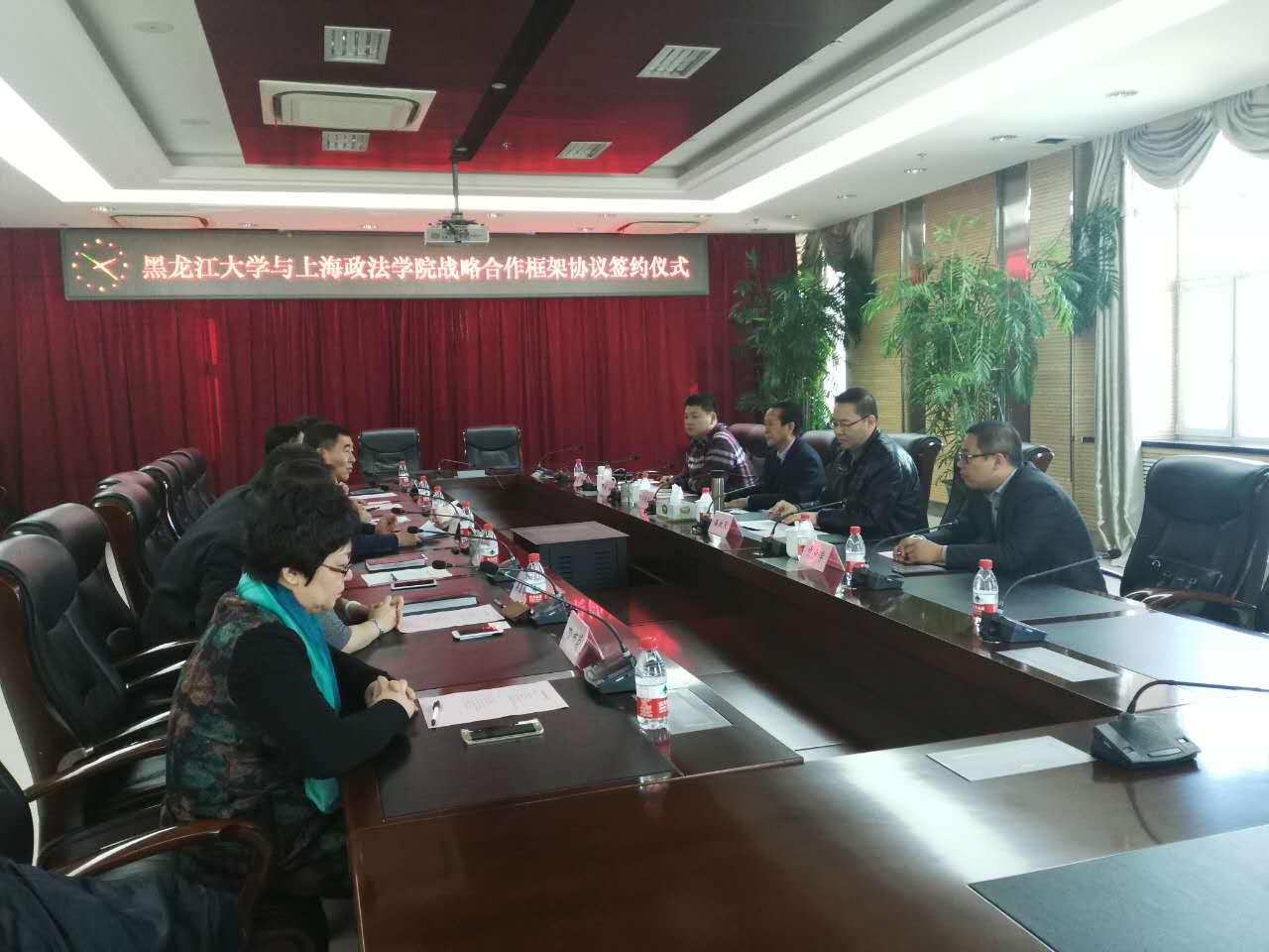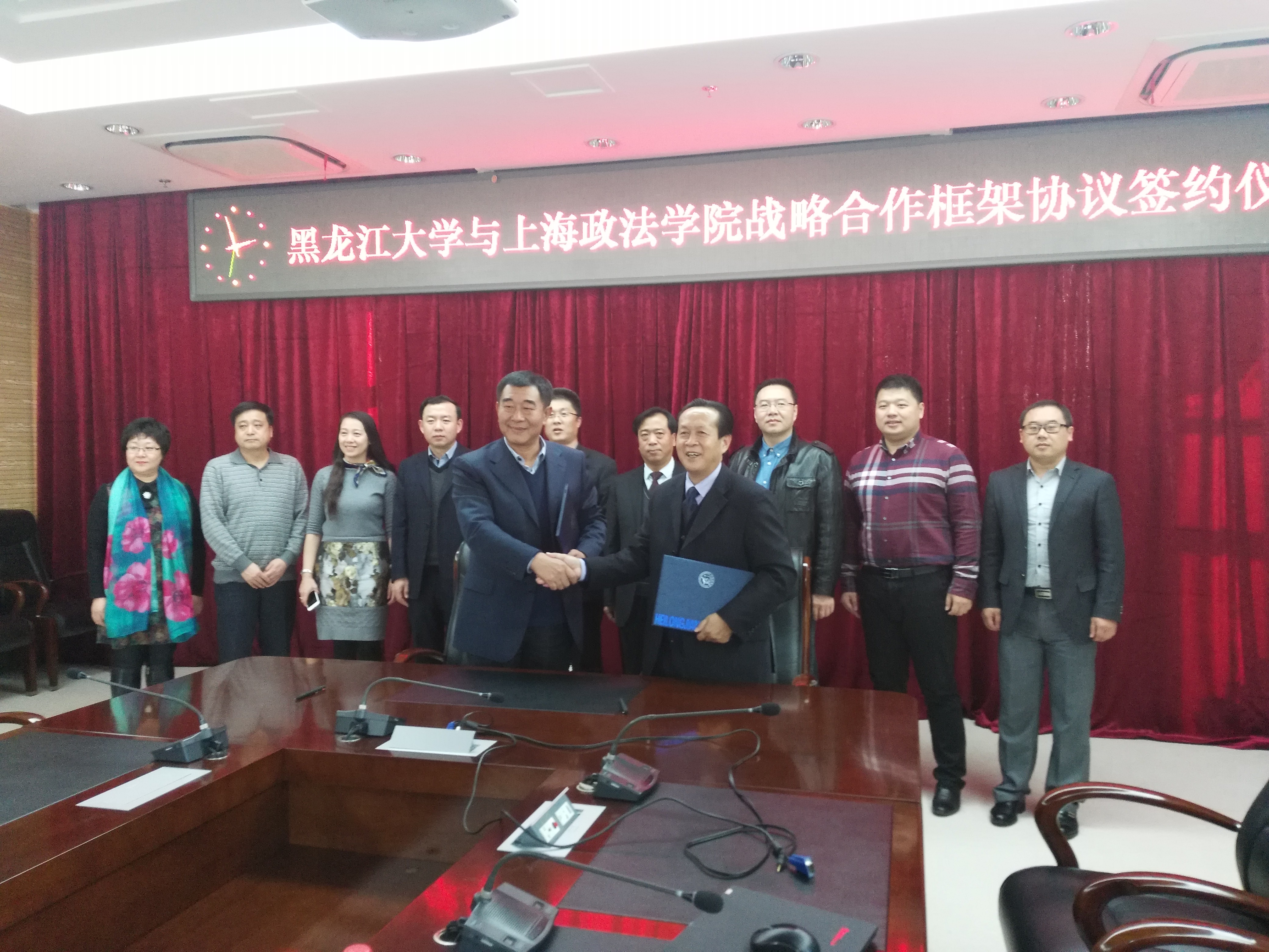 10月25日,上海政法学院与黑龙江大学战略合作签约仪式在黑龙江大学隆重举行。黑龙江大学党委书记刘德权教授,我校副校长关保英教授、副校长潘牧天教授、上合基地建设办主任陈校及相关工作人员出席了签约仪式。签约仪式由黑龙江大学法学院院长胡东教授主持。