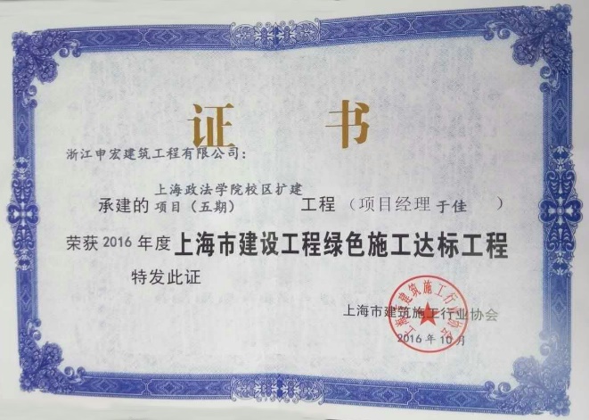 总包单位于2016年9月中旬向市主管部门申报了“绿色工地”,上海市建筑施工行业协会专家于9月底进行了现场检查,经过资料审核、现场考核、专家评审等多个环节评选后,最终,学校扩建五期项目被评为“市建设工程绿色施工达标工程”。(潘高荣 撰稿)