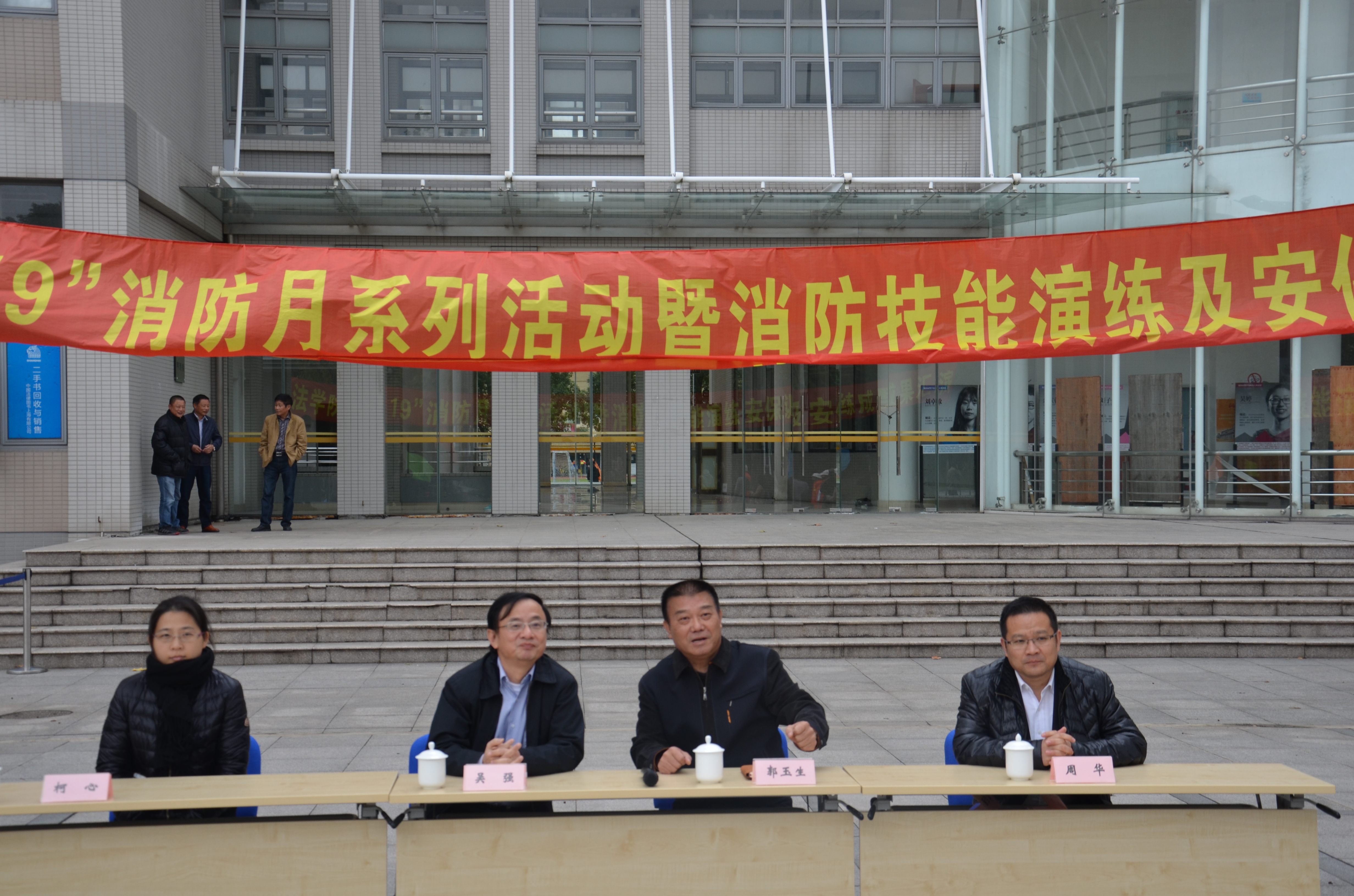 为进一步普及消防安全知识、提高安全意识,创建平安和谐校园,确保广大师生员工生命财产安全,我校于11月8日下午启动2016年“119消防安全宣传月”活动,举行消防技能演示及安保技能汇报演练。校党委副书记吴强、保卫处处长郭玉生、学工部副部长柯心等出席,学生代表、保安、宿管、后勤人员共计300余人参加。