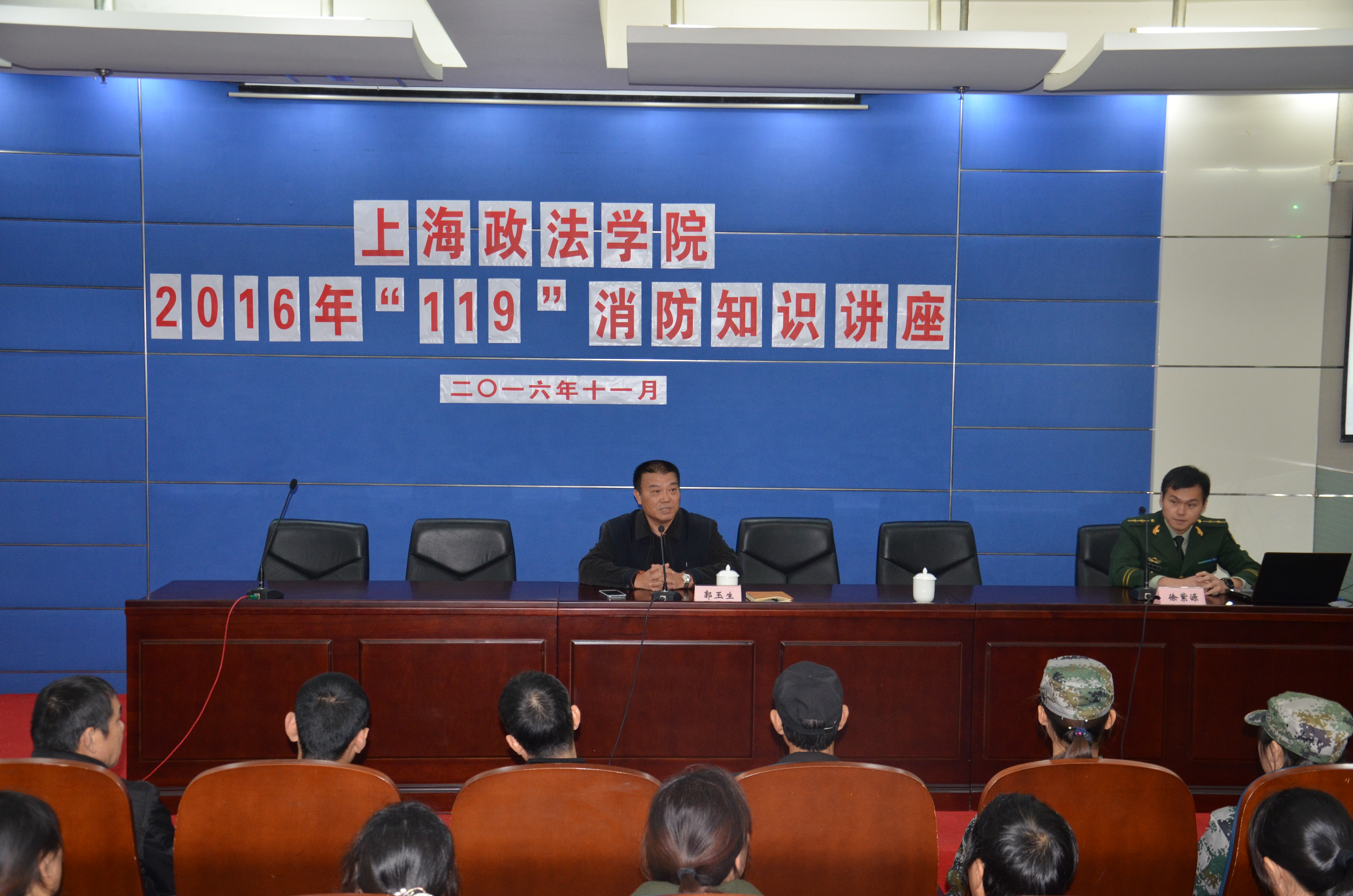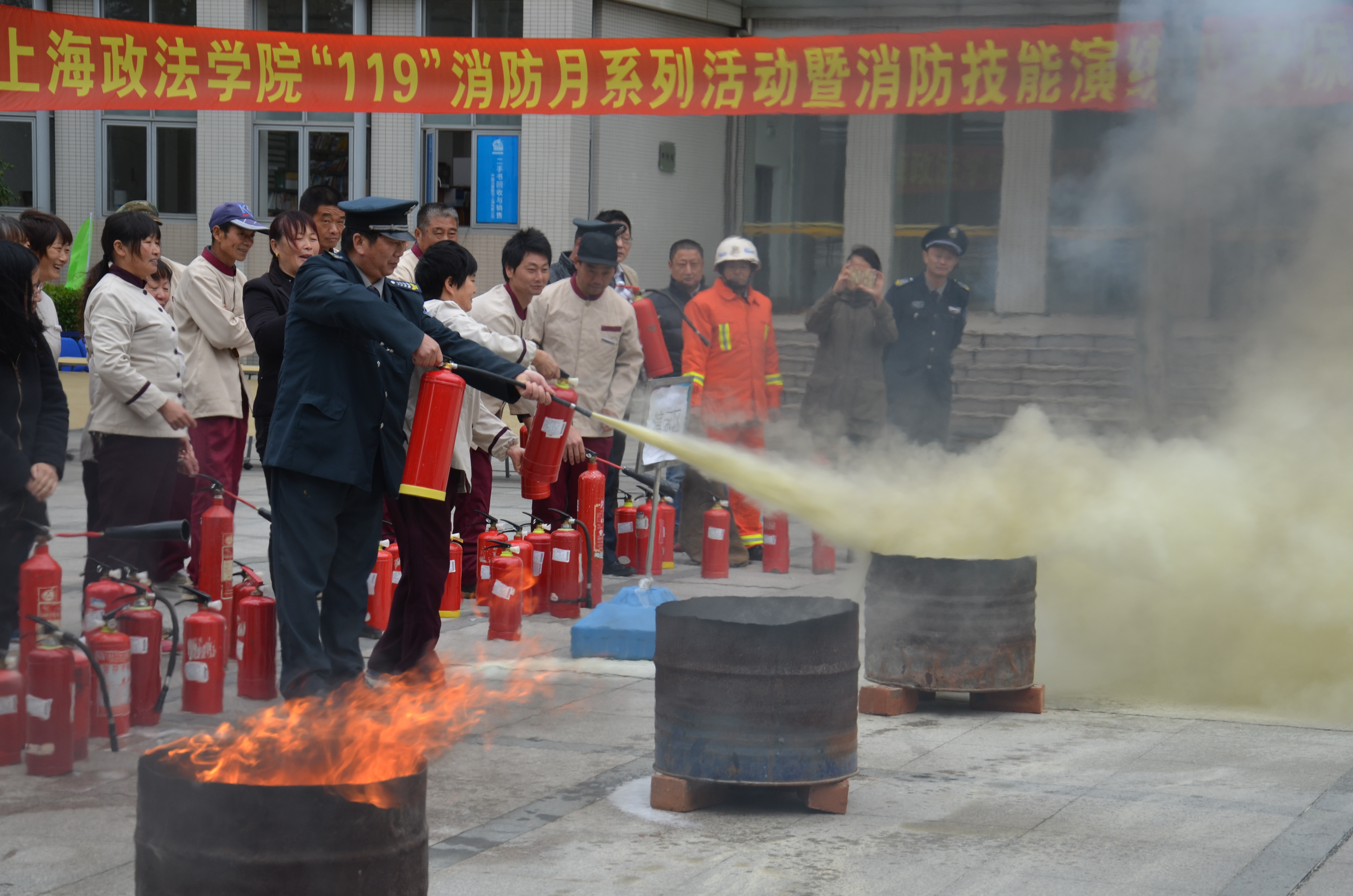 活动分两个阶段。第一阶段是消防安全知识讲座。13:30,松江佘山消防中队徐紫源副队长应邀在庸夫楼112会议室举行了消防安全知识讲座。徐警官通过近年来的火灾案例,就消防日常检查、消防火灾的应急和预防、疏散逃生的基本常识、消防设备如何使用等问题进行了深入讲解。生动的演讲、实用的消防知识给大家留下了深刻印象,增强了防火安全意识,收到良好的预期效果。