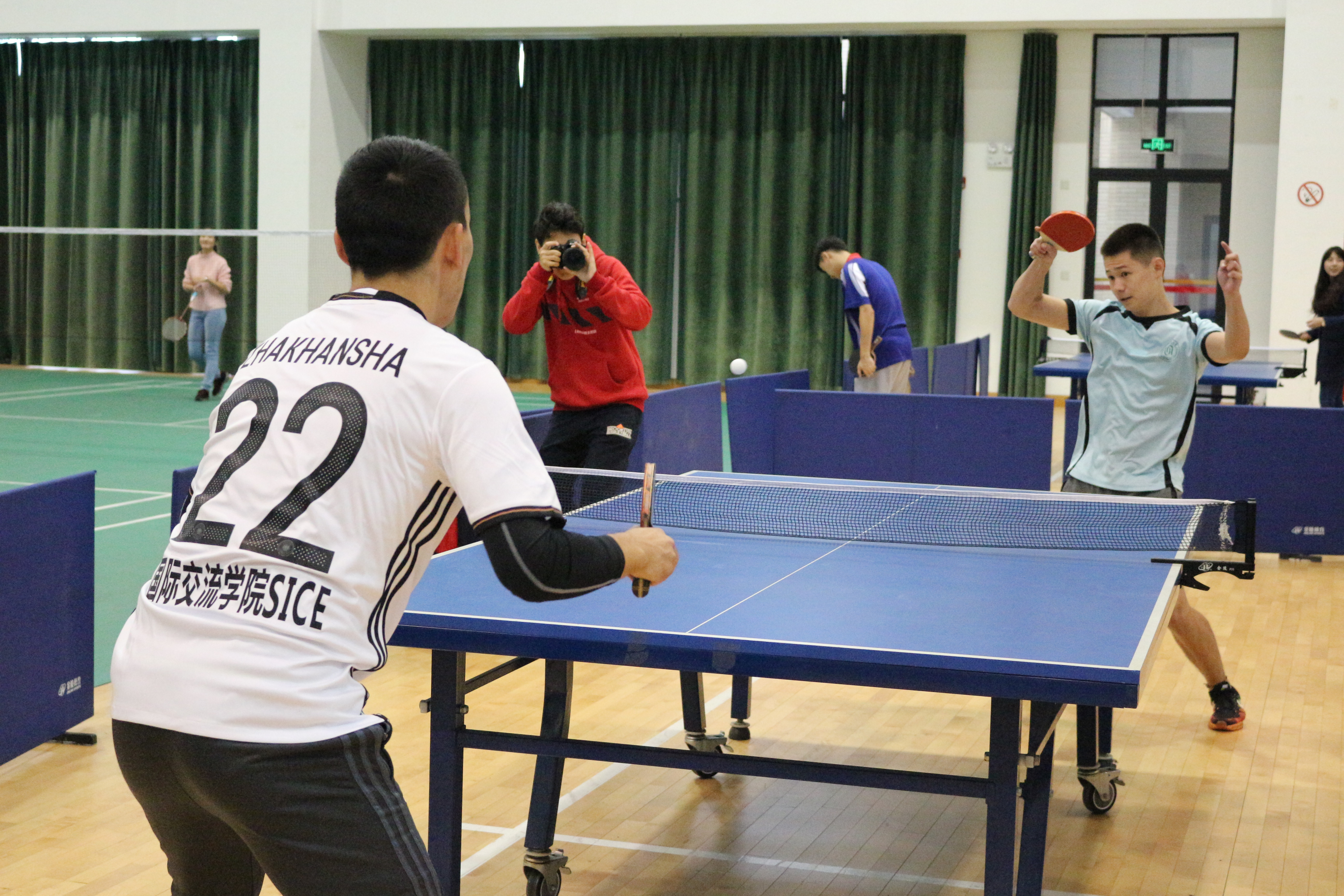 比赛中,留学生们切磋球技,互相加油。选手们个个精神饱满,挥舞着球拍,盯住对手的一举一动,拼杀、扣球、削球等打法不断运用,颇有专业选手的架势。