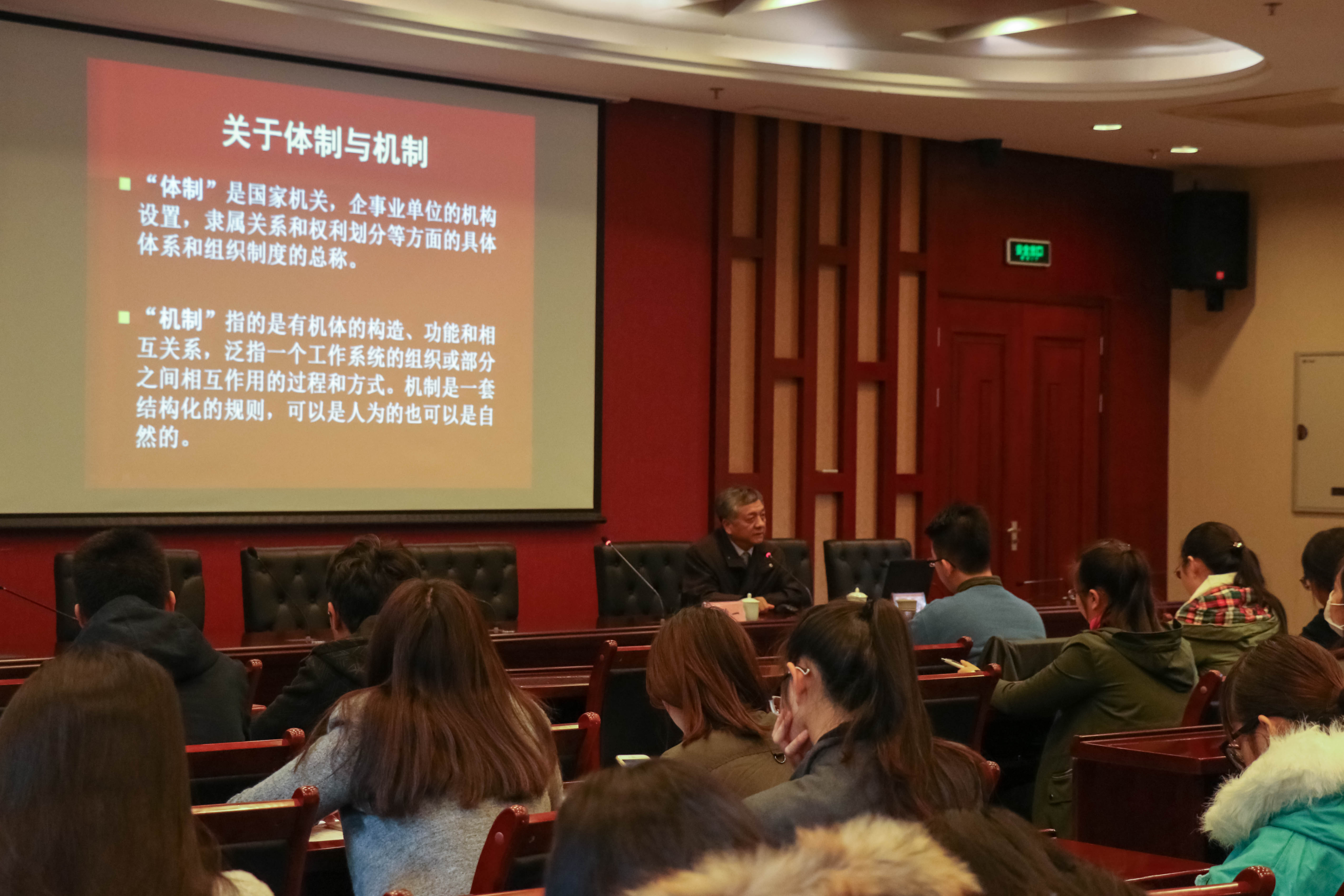 11月8日下午,上海交通大学凯原法学院沈国明教授来我校做“体制机制的完善与法治建设”的专题讲座。沈国明曾任上海市人大常委会法制工作委员会主任、上海市社科联党组书记、上海市法学会会长,在立法和法学研究方面有丰富的经验和成果。