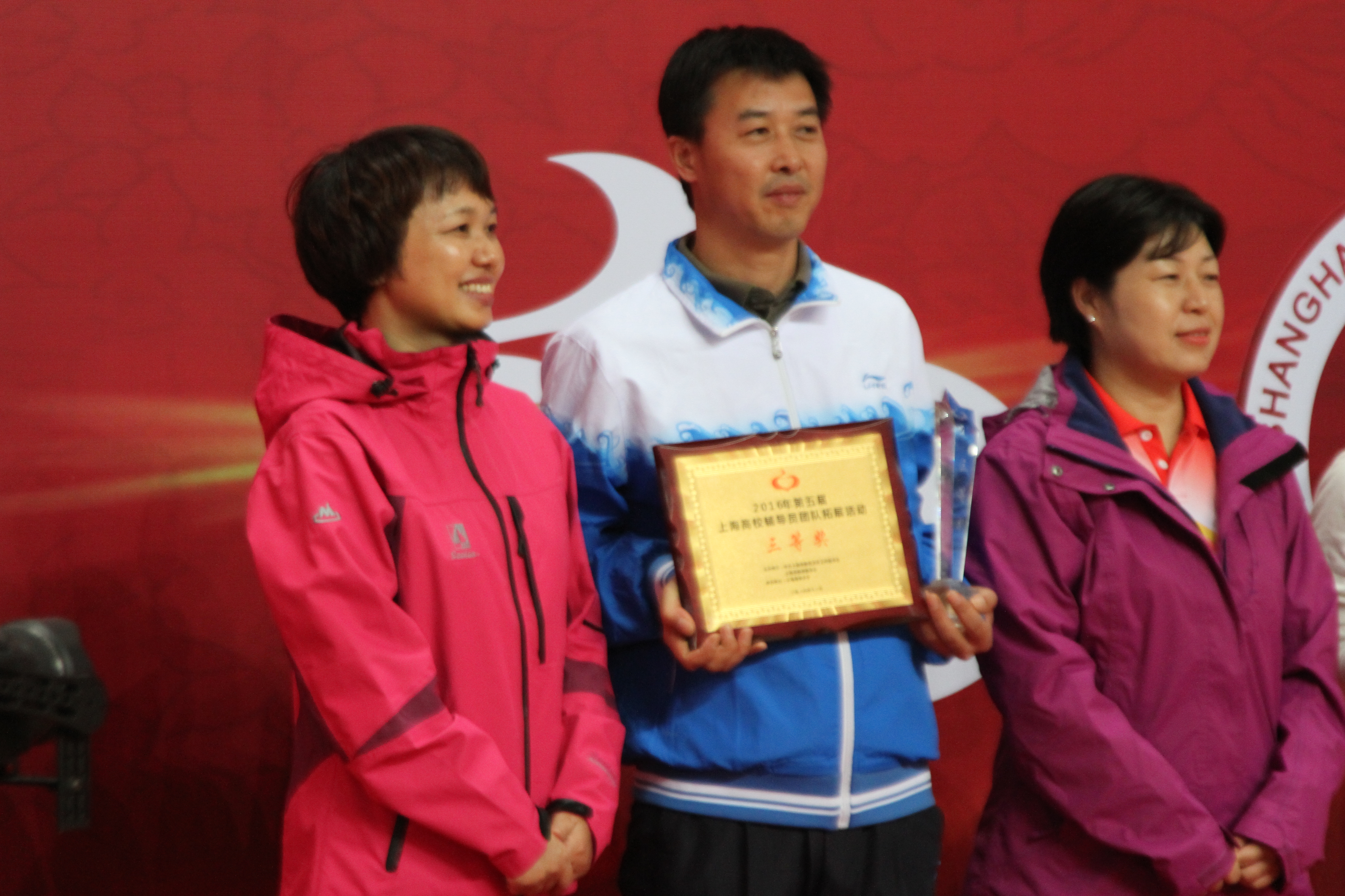 本次活动共设“一鼓作气”、“齐心协力”、“绳舞飞扬”、“心心相印”、“气拔山河”五个项目。我校辅导员在比赛中团结一心、通力协作、顽强拼搏,在优势项目上继续保持优势,在弱势项目上斩获佳绩,充分展现了我校辅导员队伍团结、向上、进取的良好精神风貌。经过近四个小时的激烈比拼,我校荣获“2016年第五届上海高校辅导员团队拓展活动三等奖” 的好成绩。