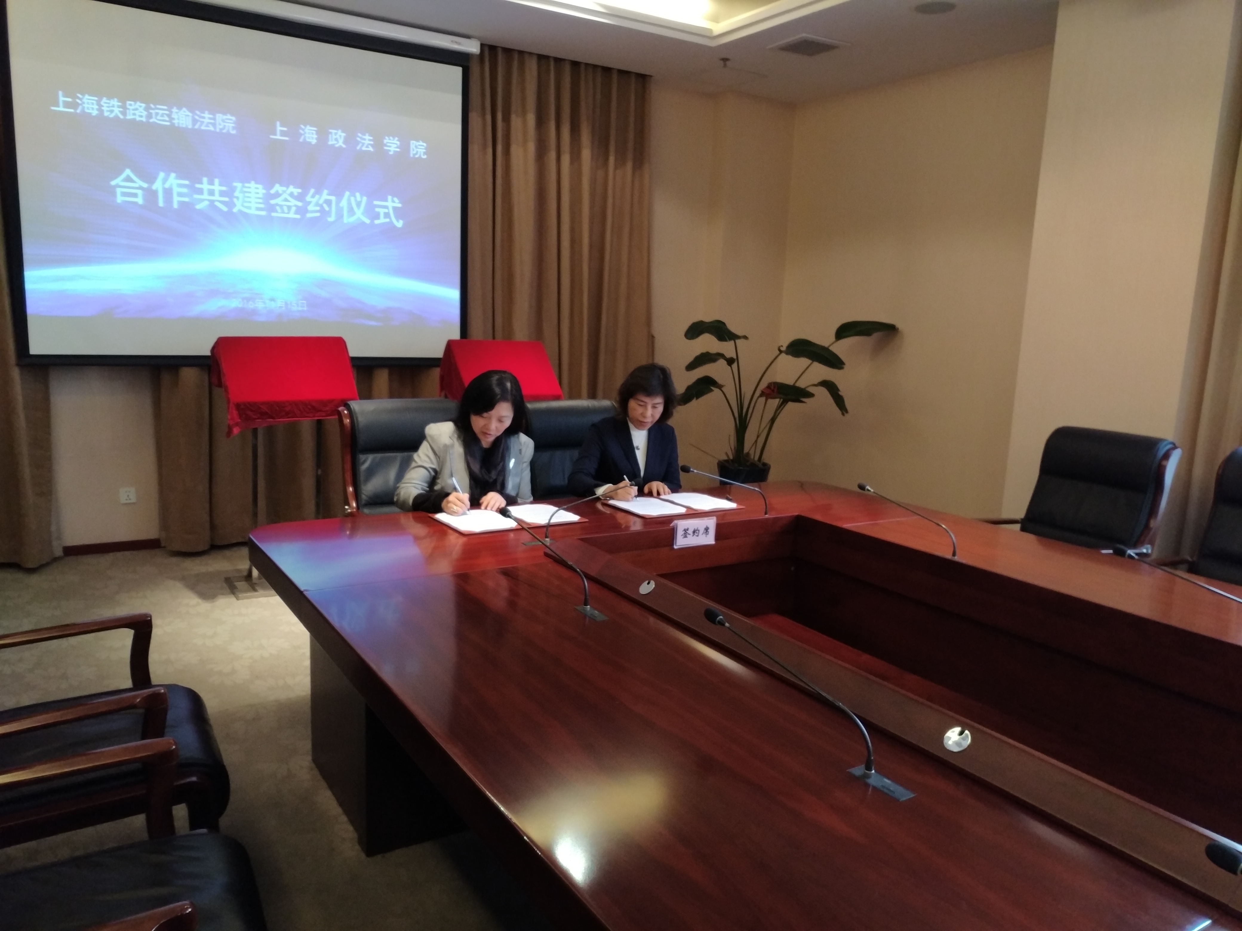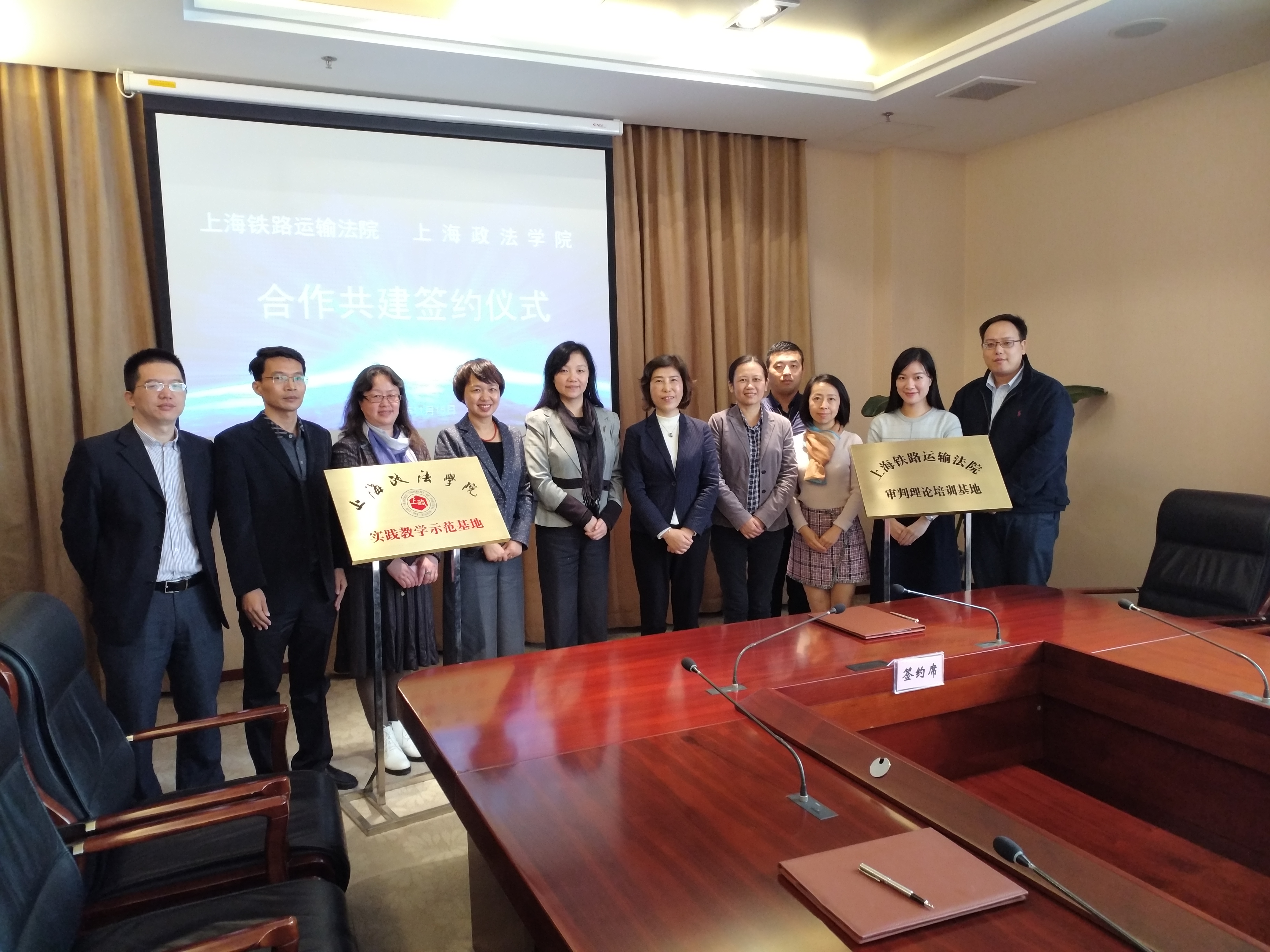 座谈结束后,双方领导共同在“上海政法学院与上海铁路运输法院合作框协议”上签字,并为“上海政法学院实践教学示范基地”及“上海铁路运输法院审判理论培训基地”揭牌。