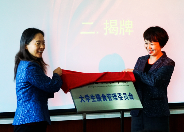 会上,祝耀明宣读了《关于成立上海政法学院大学生膳食管理委员会的决定》,周银娥、胡继灵共同为大学生膳食管理委员会揭牌,并为委员会成员颁发聘书。