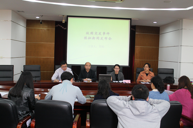 11月18日下午,我校“辅导员、宣传员媒介素养提升”专题培训第三讲——《校园突发事件模拟新闻发布会》在求实楼513会议室开展,主讲人是来自中国浦东干部学院教研部的贾敏老师。培训通过模拟校园突发事件情形下,以学员参与角色扮演的方式召开新闻发布会,以提升突发事件下学员们的媒体沟通能力。