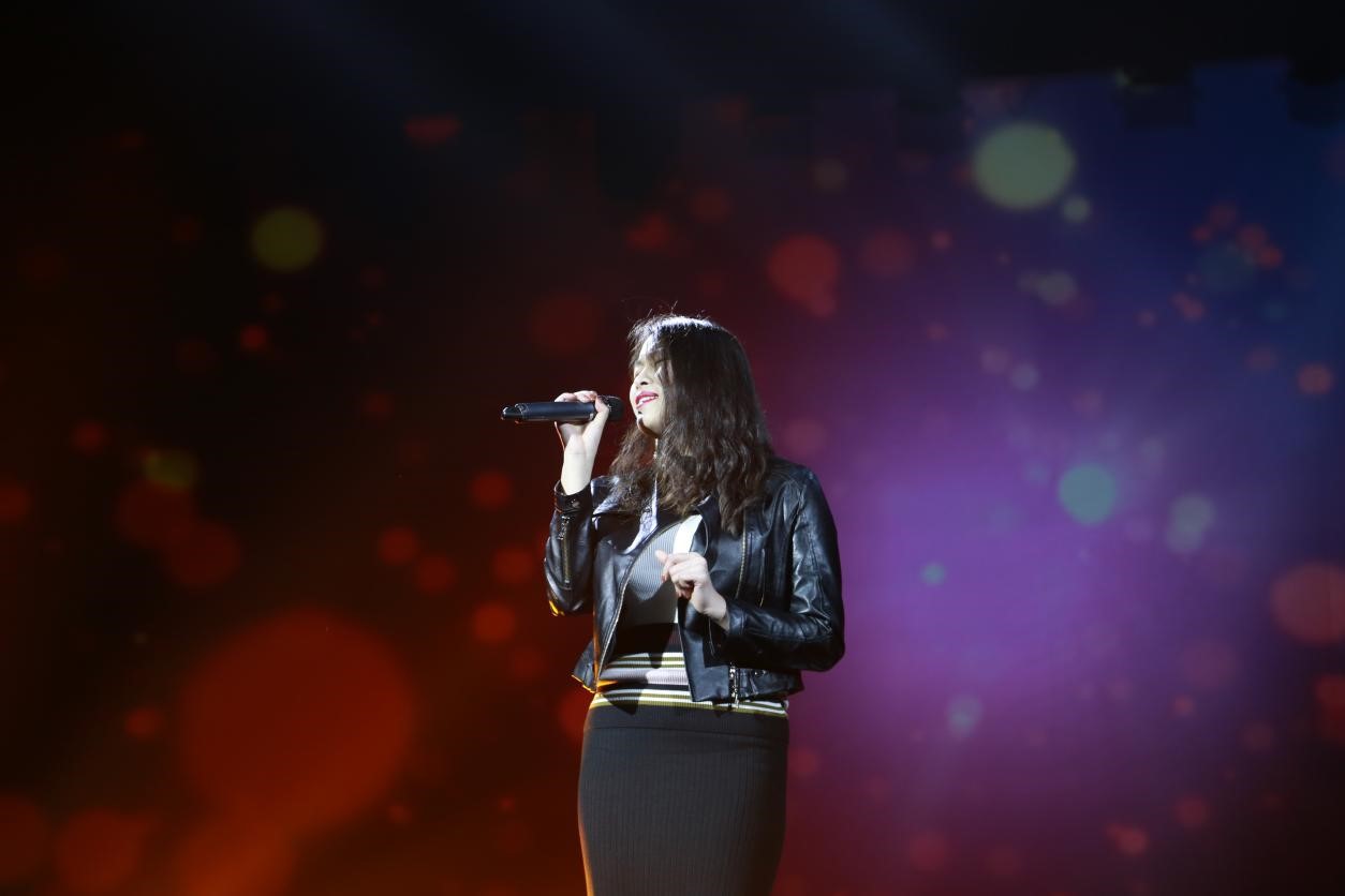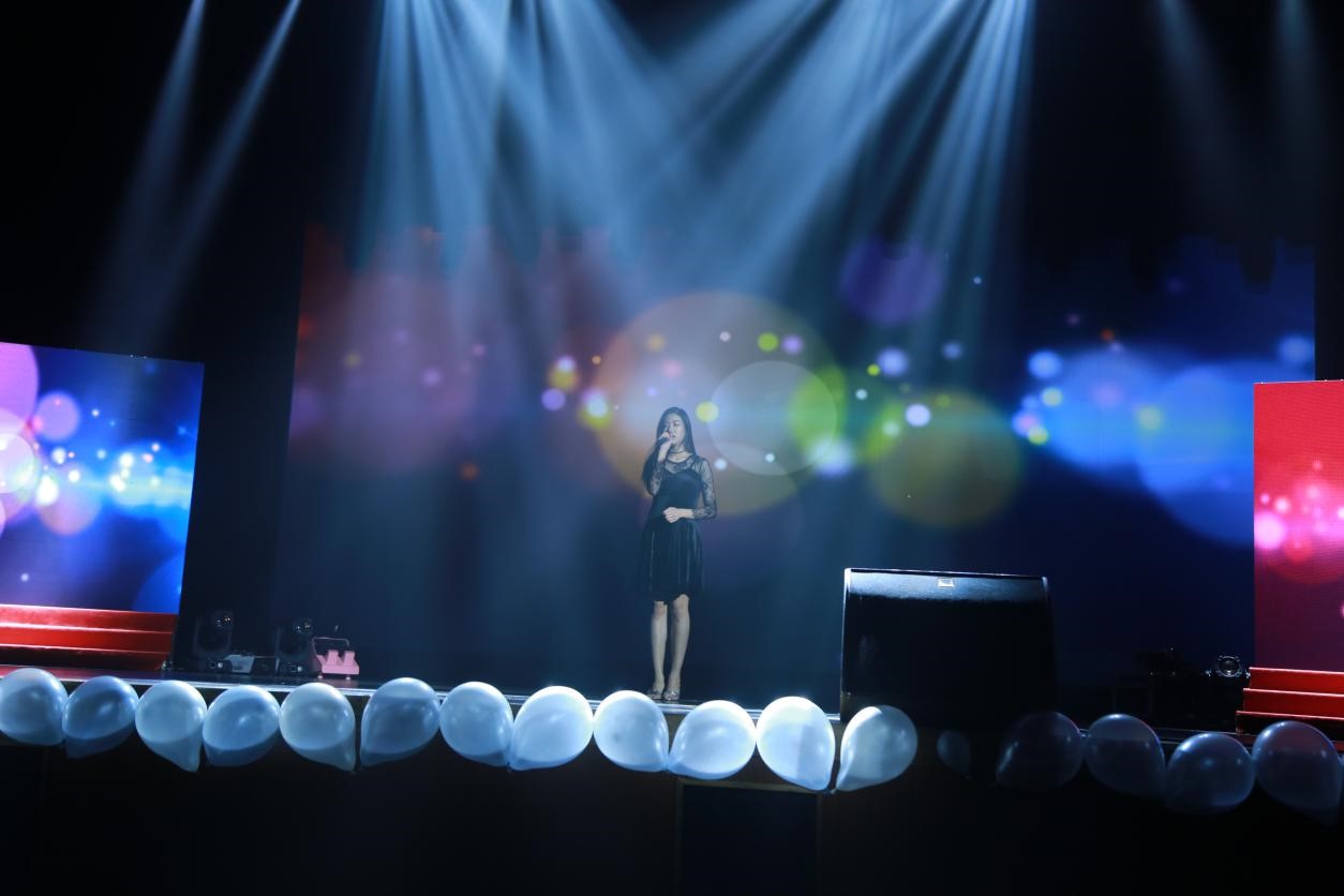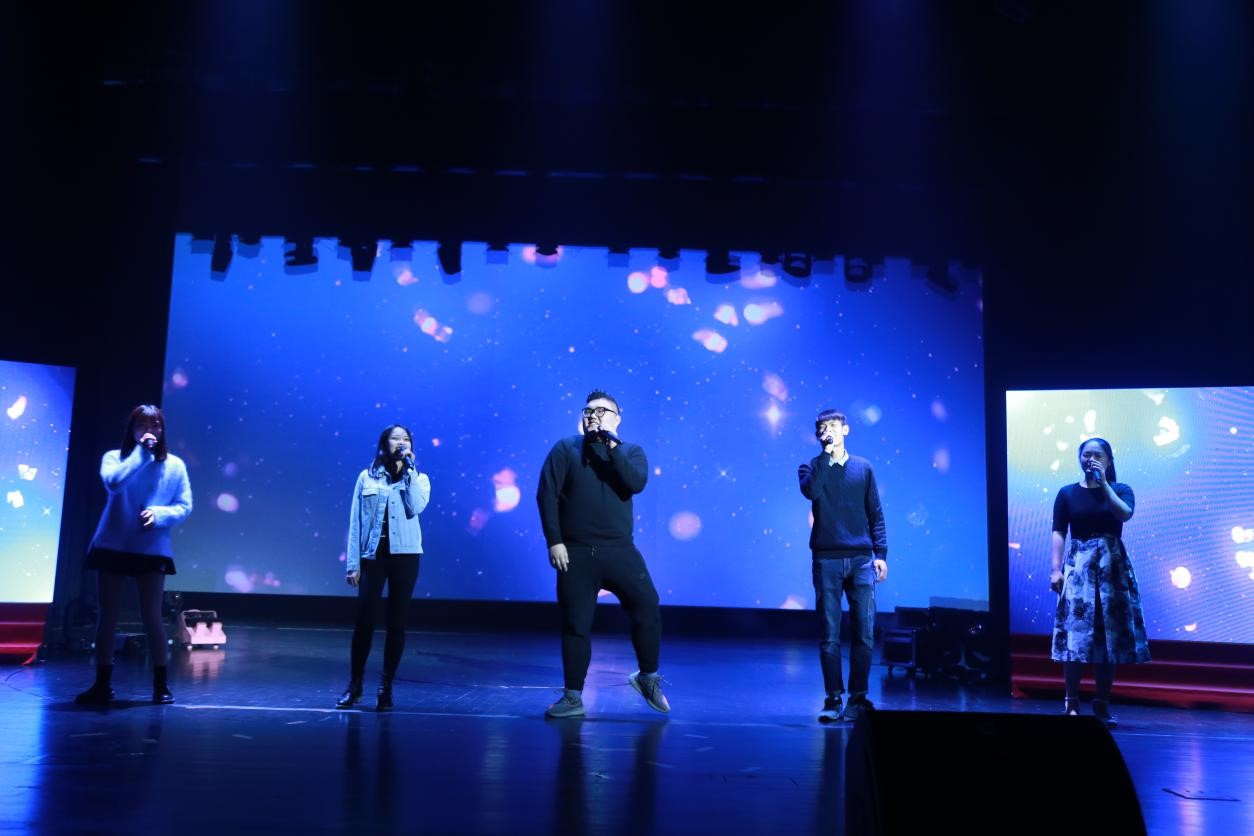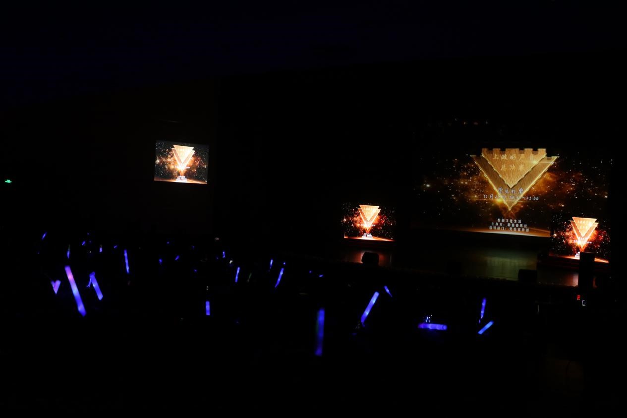学员比赛正式开始,四组学员依次演唱。现场气氛达到高潮,观众们尽情挥舞手上的蓝色荧光棒,形成一片蓝色海洋。