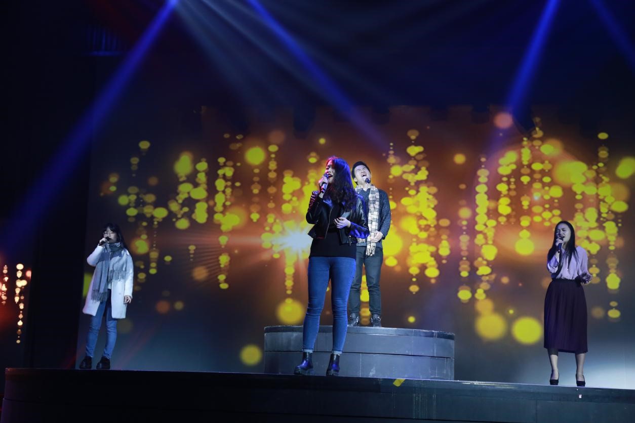 在学员们比赛过程中,导师也带领本组学员一起表演歌曲。