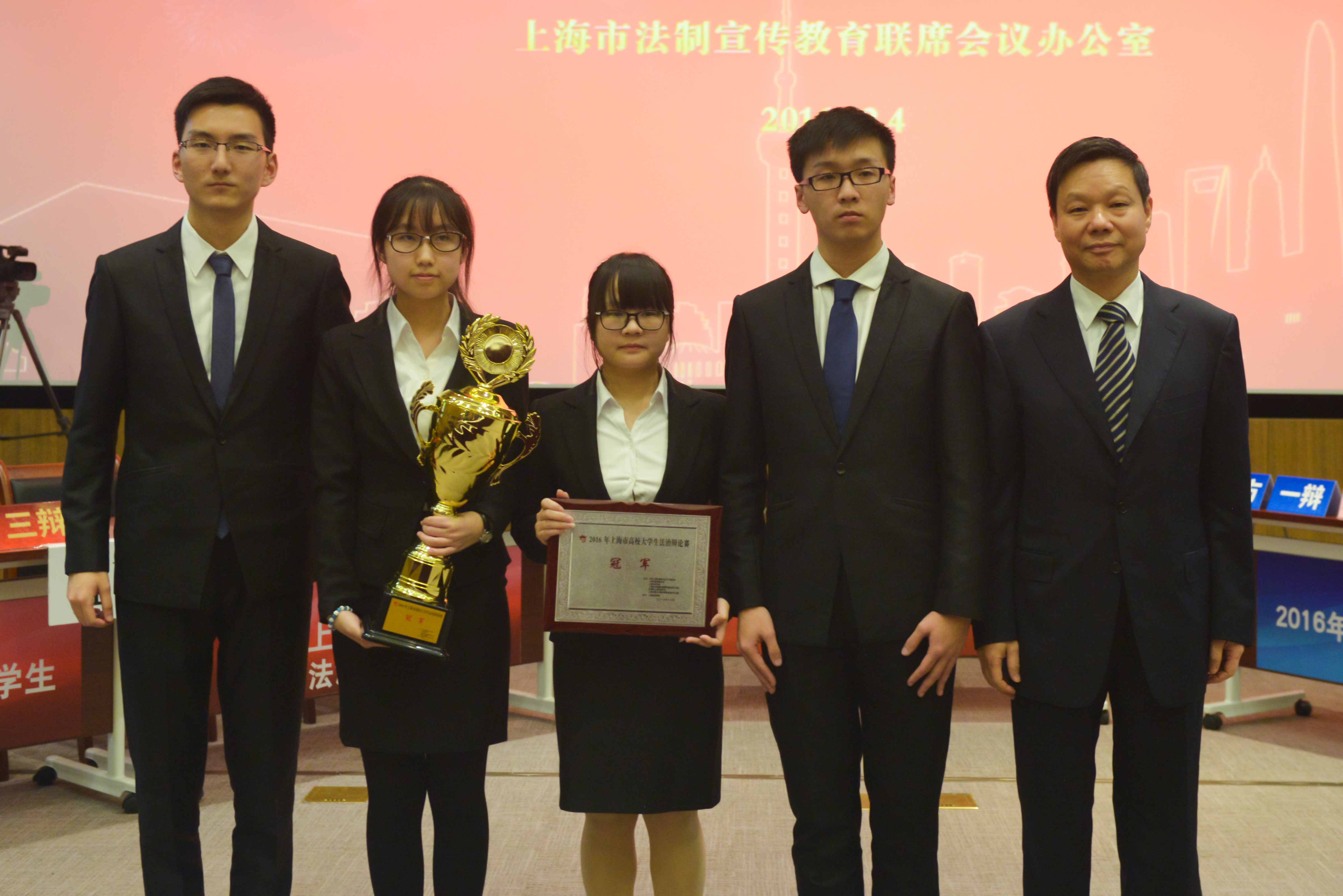 2016年上海市高校大学生法治辩论赛于10月22日在上海政法学院揭幕,大赛共吸引了31所高校和36所高中参赛。历经一个多月的初赛和复赛,大学组最终有上海第二工业大学、上海海事大学、上海戏剧学院和上海政法学院挺进半决赛。决赛的辩题是“网络实名制对于公共议题的讨论是利大于弊,还是弊大于利”。经过上午的激烈角逐,决赛由上海政法学院对阵上海戏剧学院。