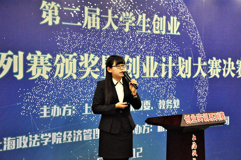 共有六组选手展示了各自的创业项目。“上政生活平台小组”的项目是一个依托第三方平台、利用网络流动性及普遍性,针对大学生在校生活而设计出的校园信息资源发放平台。“Hi story小组”项目目的在于提高学生的历史知识涵养,有效解决应试教育所带来的背书难问题,运用当今网络高科技,效仿小黄鸭与Siri,打造出人工智能学习APP。“DCT战队”项目旨在合理运用广告宣传单纸,为顾客提供限量免费打印的服务,同时以低价为师生提供便利。“嗨森time小组”项目是以线下传统的抓娃娃机行业为基点,向成为商城配套设施和新媒体策划公司转型,打造声控、动漫相关、专卖店等各类形式的抓娃娃机娱乐项目。“在线家具租赁小组”项目灵感来源于消费模式的改变,为共享经济兴起,开发短租的消费热点,小组将提供二手家具租赁,以由家具厂到运营商,运营商到客户的点对点模式进行服务。“学聊小组”项目创业单位为上海彼可信息科技有限公司,彼可产品技术研发已陆续实现个人企业协同互联、语音智能办公等目标,可提供易助教等相关APP的服务。