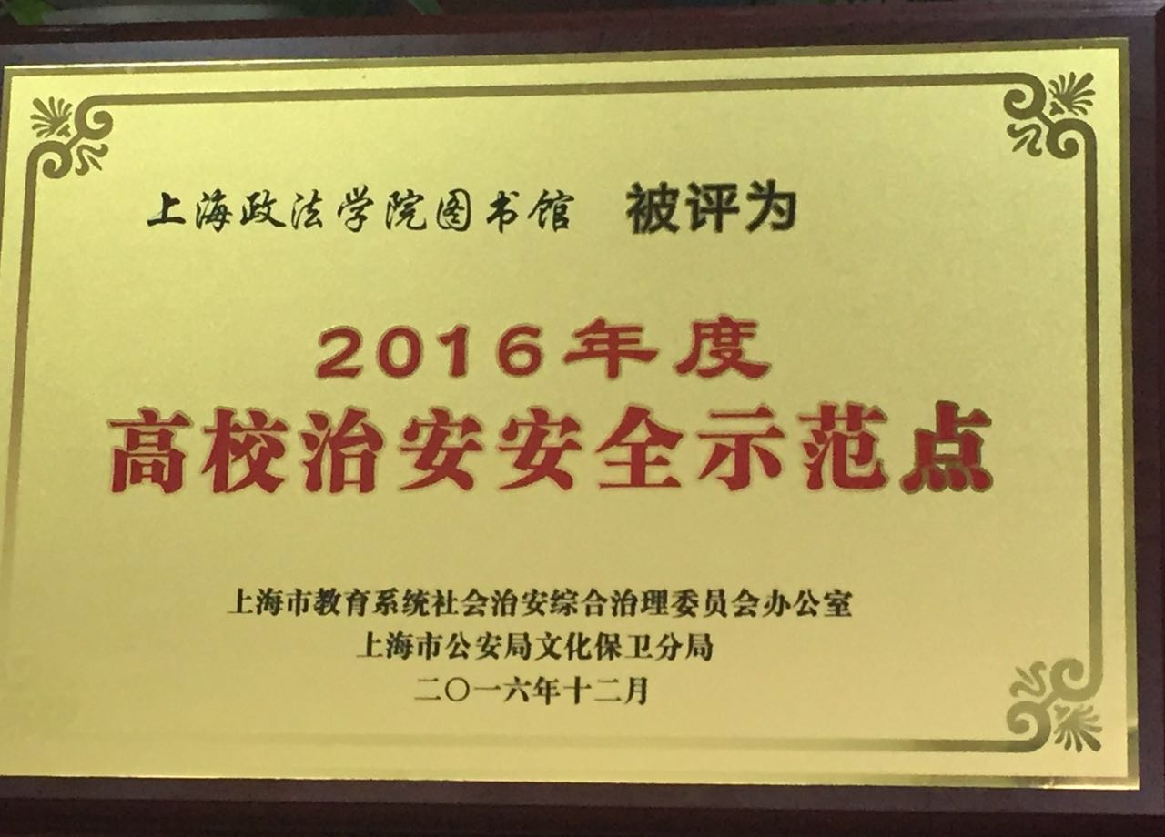 12月9日下午,上海市教育系统社会治安综合治理委员会办公室和上海市公安局文保分局共同举办的上海市“2016年度高校治安安全示范点”工作会议暨颁奖仪式在上海理工大学举行。上海市公安局文化保卫分局、市教委后勤保卫处及各高校保卫处负责人参加会议。我校图书馆被授予“高校治安安全示范点”荣誉称号。学校保卫处处长郭玉生参加会议并领奖。