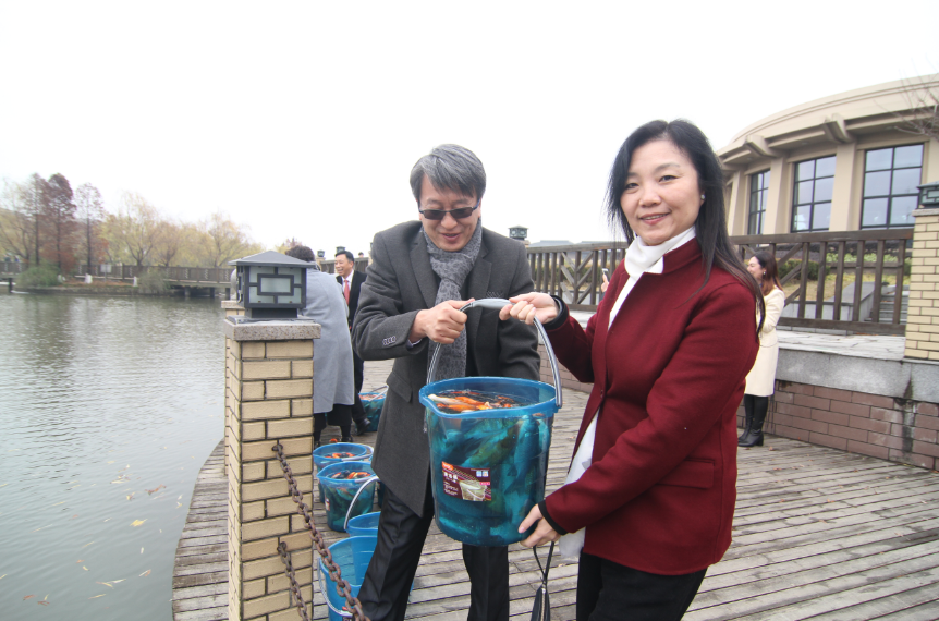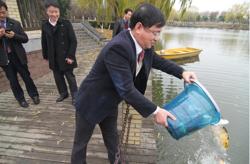 研讨会结束之后,各位领导专家来到我校亲水平台前举行投放鱼苗仪式,鱼苗象征着水上丝绸之路的护航使者,希望通过此次鱼苗投放活动,引导带动更多的师生和社会各界人士对我们律师学院的发展给予更多的帮助,同时也借此机会优化学校环境,倡导生态环保意识,推动我校精神文明创建工作更上一层楼。(汪雪苑撰稿 晏晓东摄影)