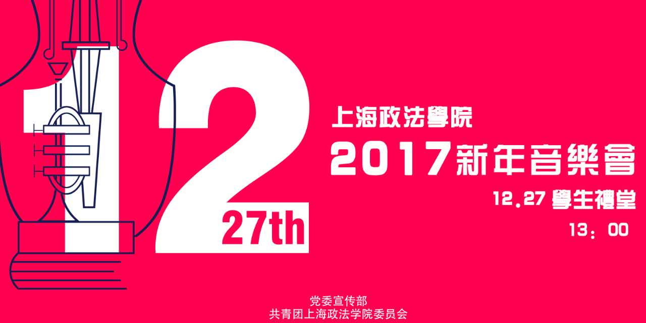 值此岁末年初之际,由我校党委宣传部主办、校团委承办的上海政法学院新年音乐会将于2016年12月27日(周二)13:00在学生礼堂上演,欢迎广大师生届时前往观看,我们期待与您相会。