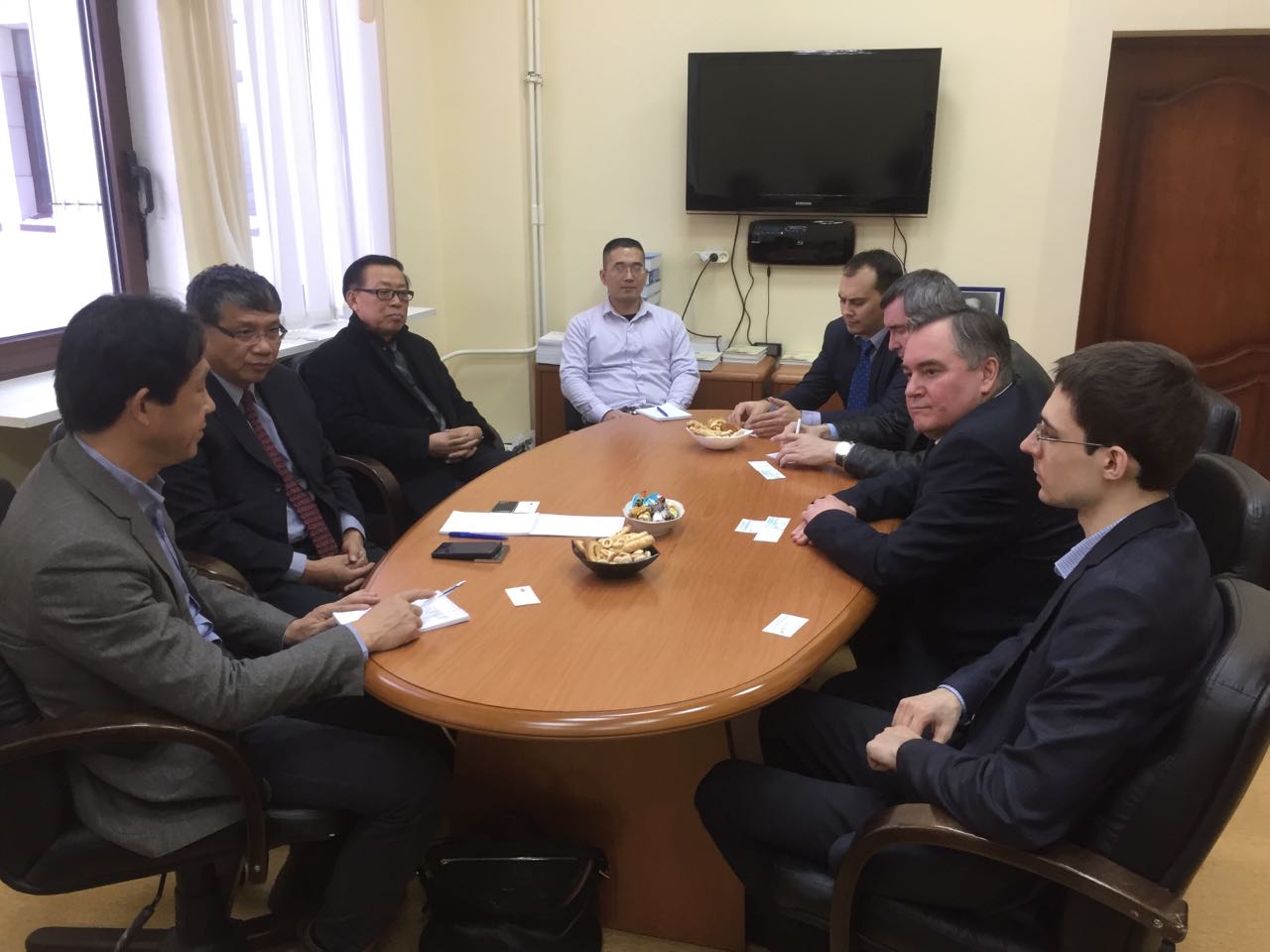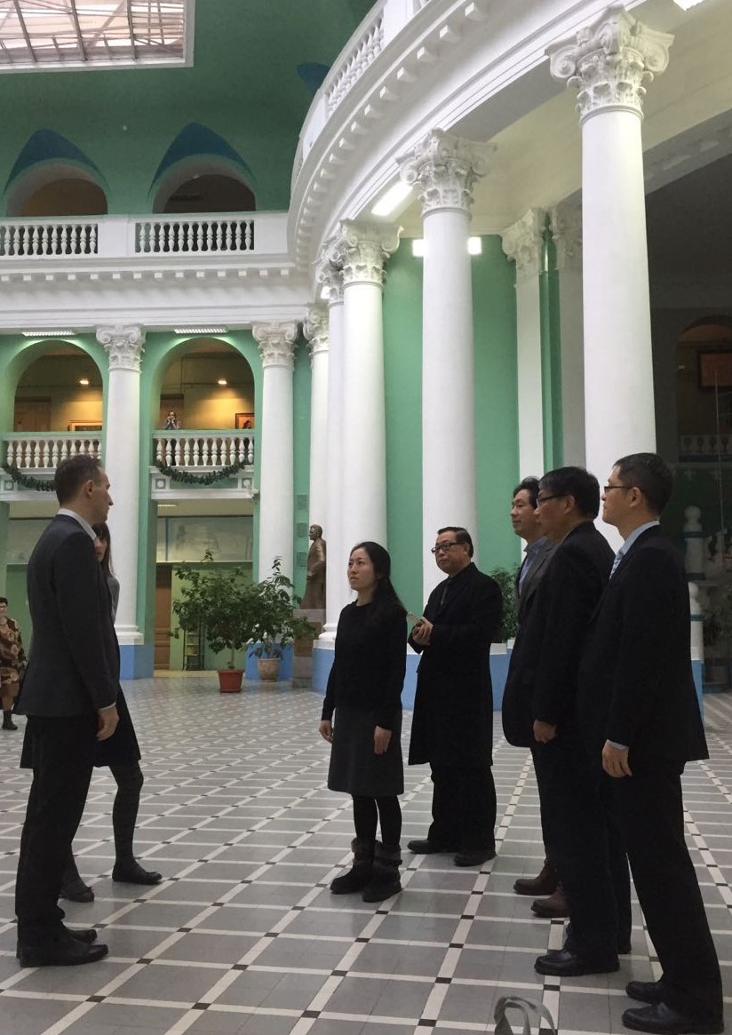 12月15日,代表团赴莫斯科国立师范大学和莫斯科大学访问。莫斯科国立师范大学副校长康斯坦丁热情介绍了学校发展概况,强烈希望能与我校在学生交流、教师访学、安全、反恐科研方面开展合作,并希望明年能到我校访问。莫斯科大学政治学系主任安德烈·苏托夫教授在会谈时表示,对我校“培训基地”慕名已久,希望能与我校进一步开展学术交流,共同举办国际学术会议,并诚挚邀请代表团成员明年到莫斯科参加莫大纪念十月革命100周年国际学术会议。