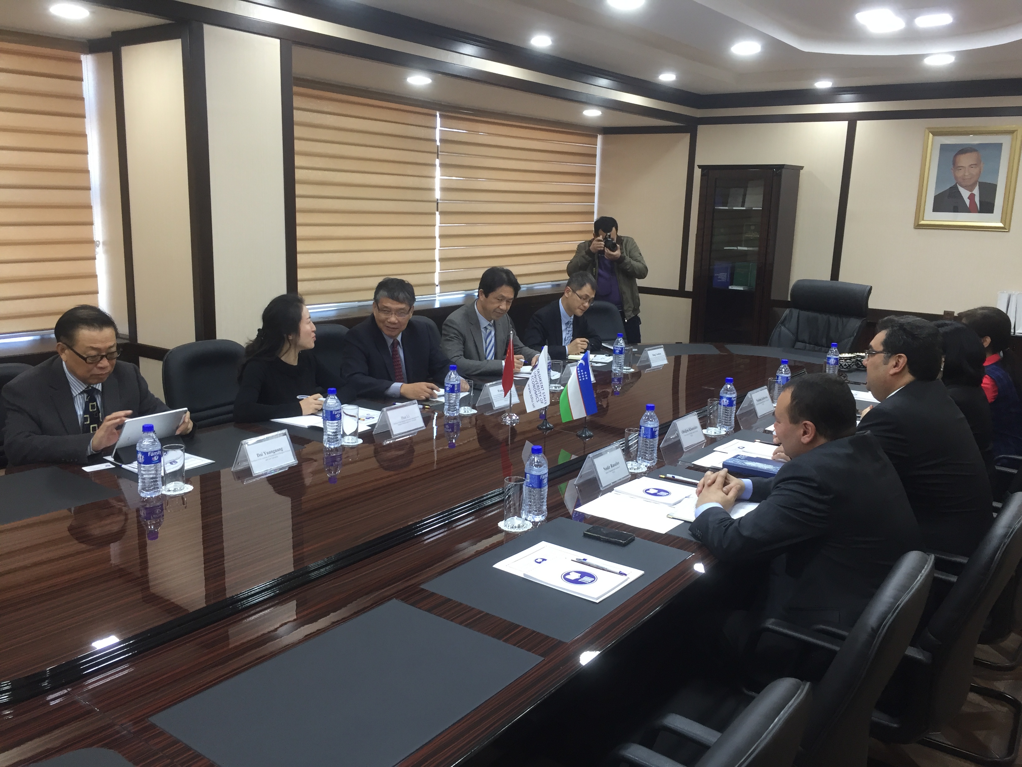 这是我校第一次正式出访乌兹别克斯坦,乌方高度重视此次访问。12月13日,代表团分别访问了乌兹别克斯坦民族大学、塔什干国立经贸大学和乌兹别克斯坦总统地区战略研究所。双方就师生交流、学生互换、合作开展科研等方面进行了深入的交流,并就当前地区安全、反恐形势进行了研讨,初步达成了学术合作意向。