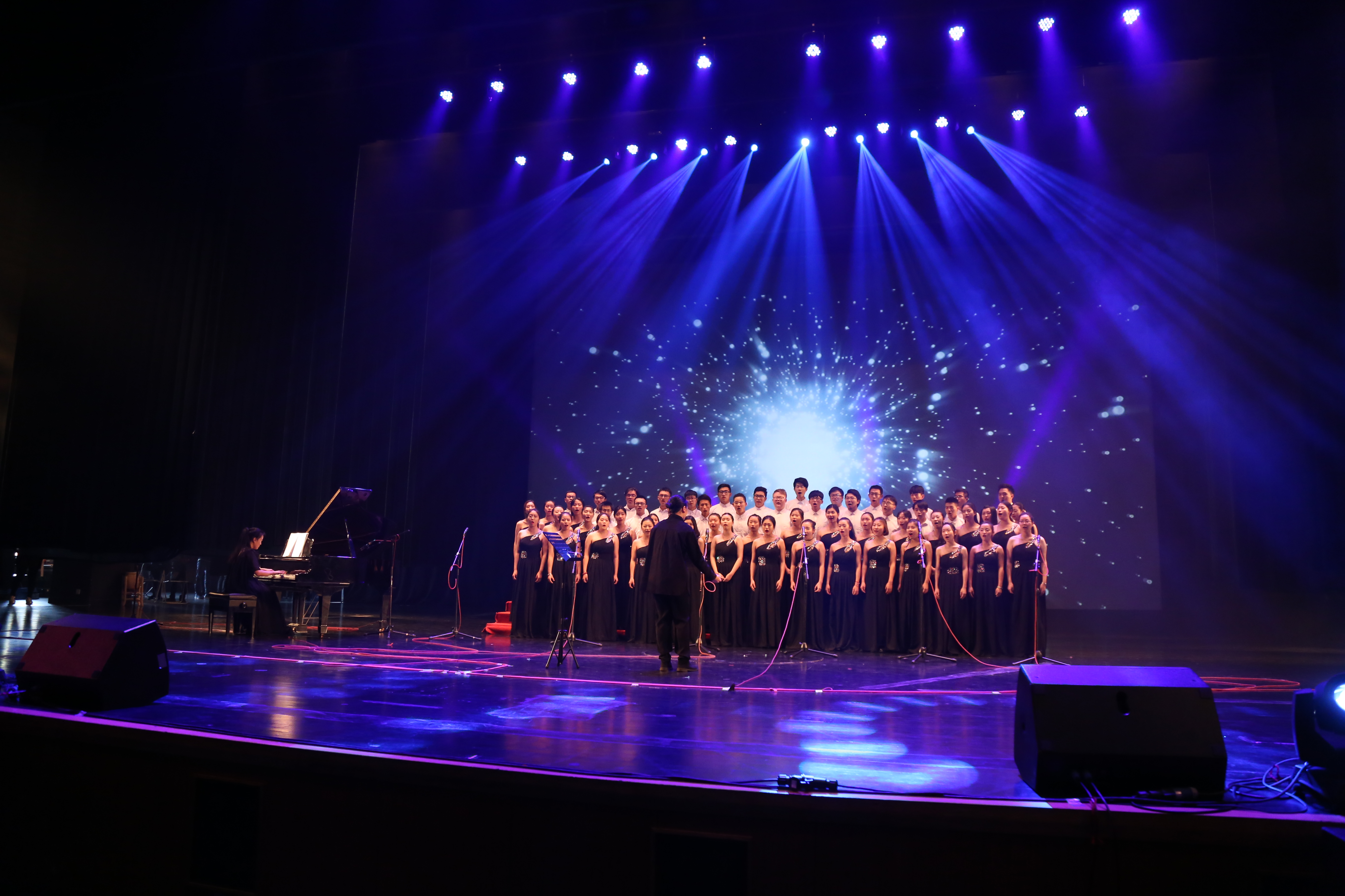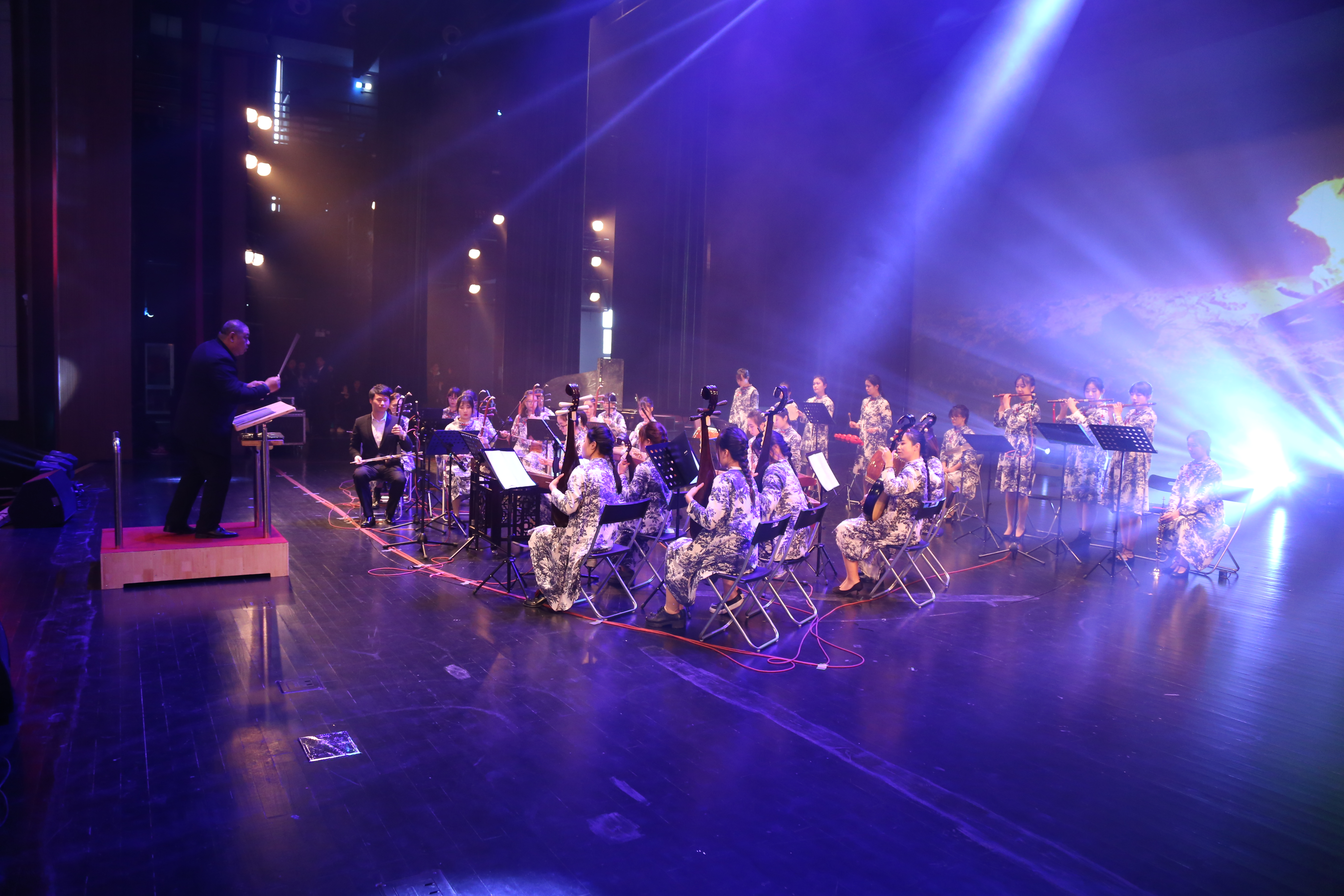 音乐会结束后,校领导与师生代表、全体演职人员合影留念。