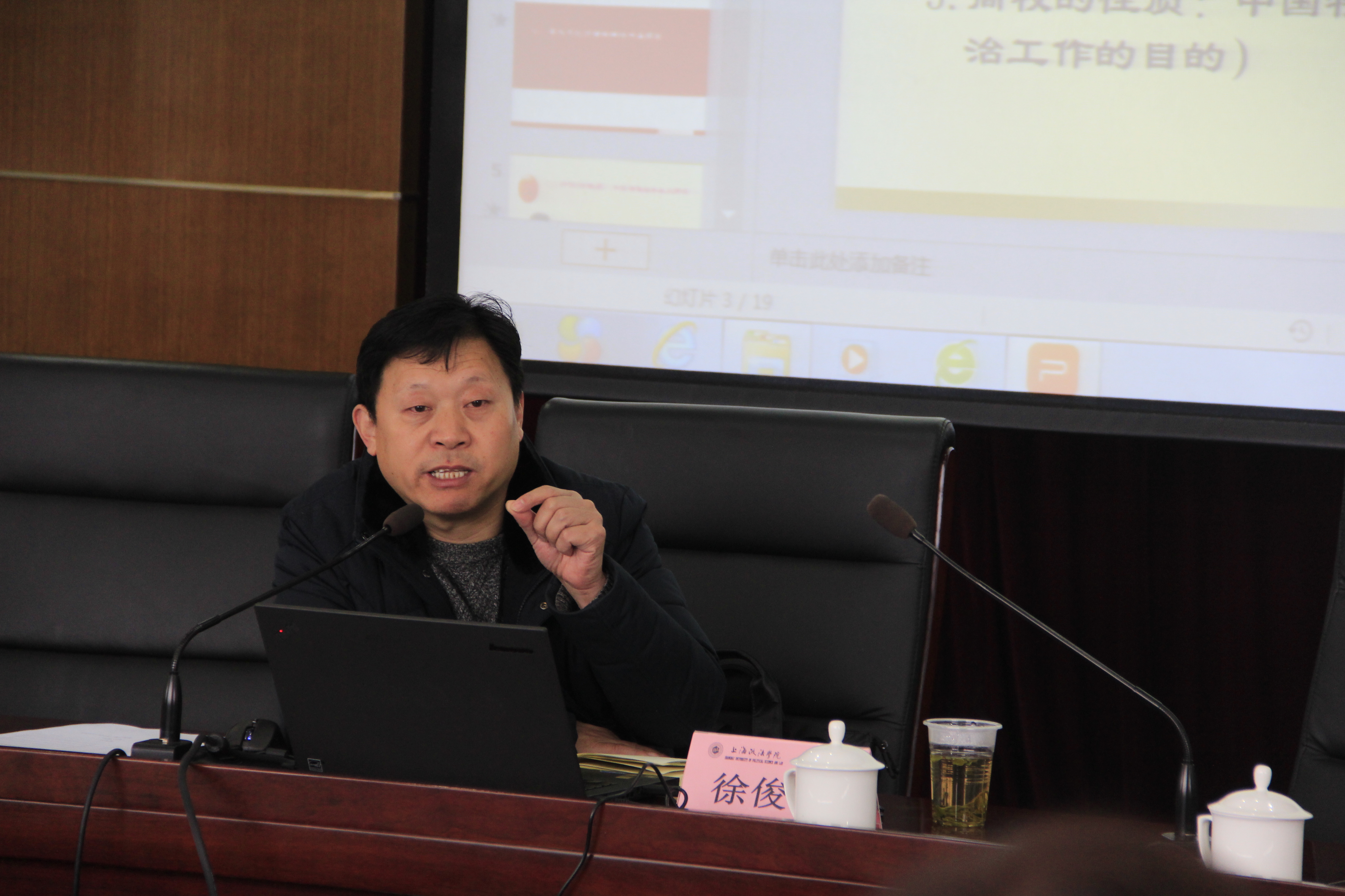 12月28日上午,“以习总书记讲话精神为指南,整合学工队伍管理育人资源”为主题的学习会在求实楼513召开。马克思主义学院党总支副书记徐俊峰副教授主讲。会议由学工部副部长柯心主持,校党委副书记、副校长周银娥、学生工作部部长刘志强、各二级学院学工负责人和全体辅导员出席了学习会。