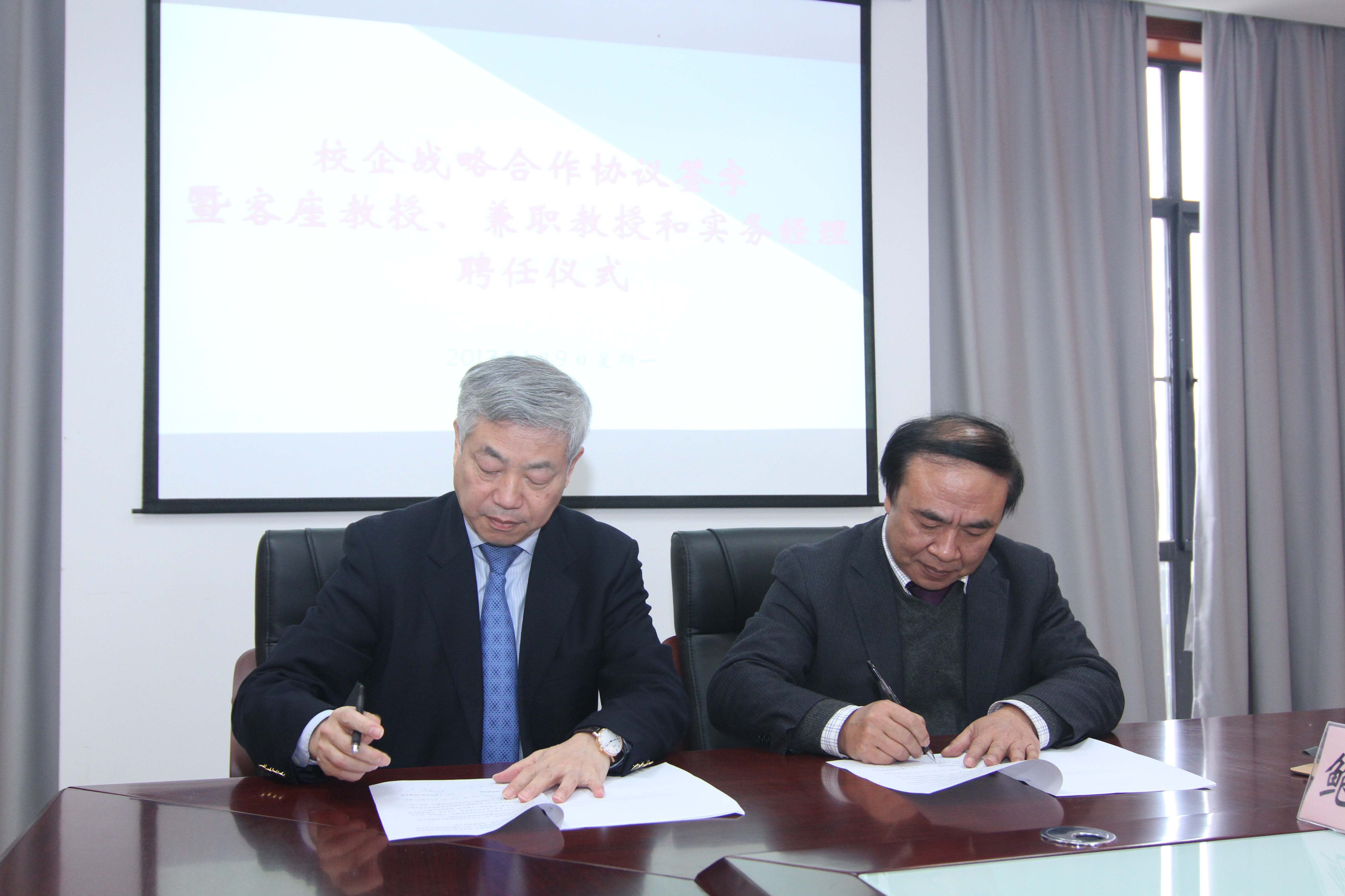 最后,举行了战略合作协议签字仪式,聘任孙勇为经济管理学院客座教授;聘任陆士敏、沈蓉、陈立等为经济管理学院兼职教授;聘任戴光宏、李俊祥等为经济管理学院实务经理。