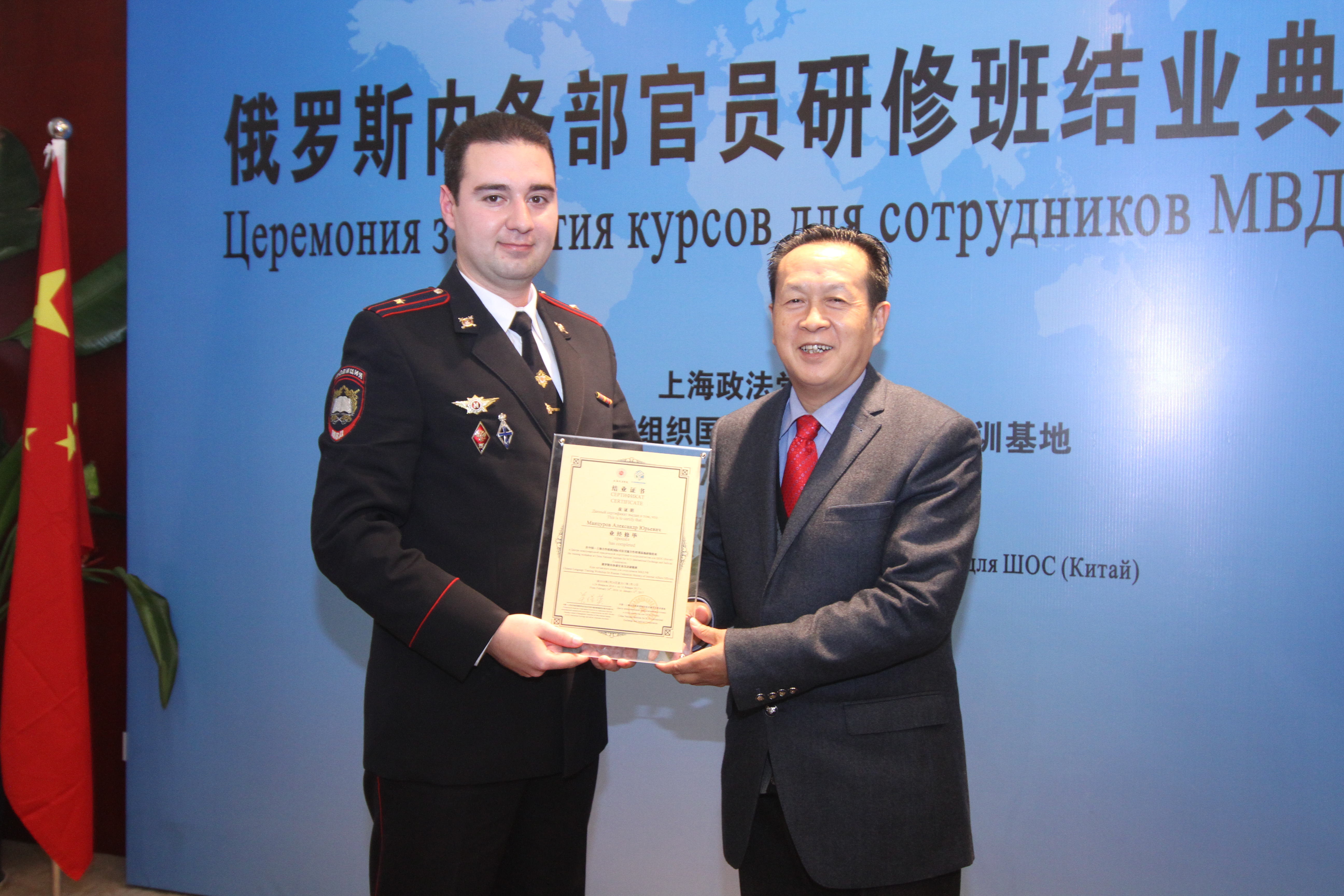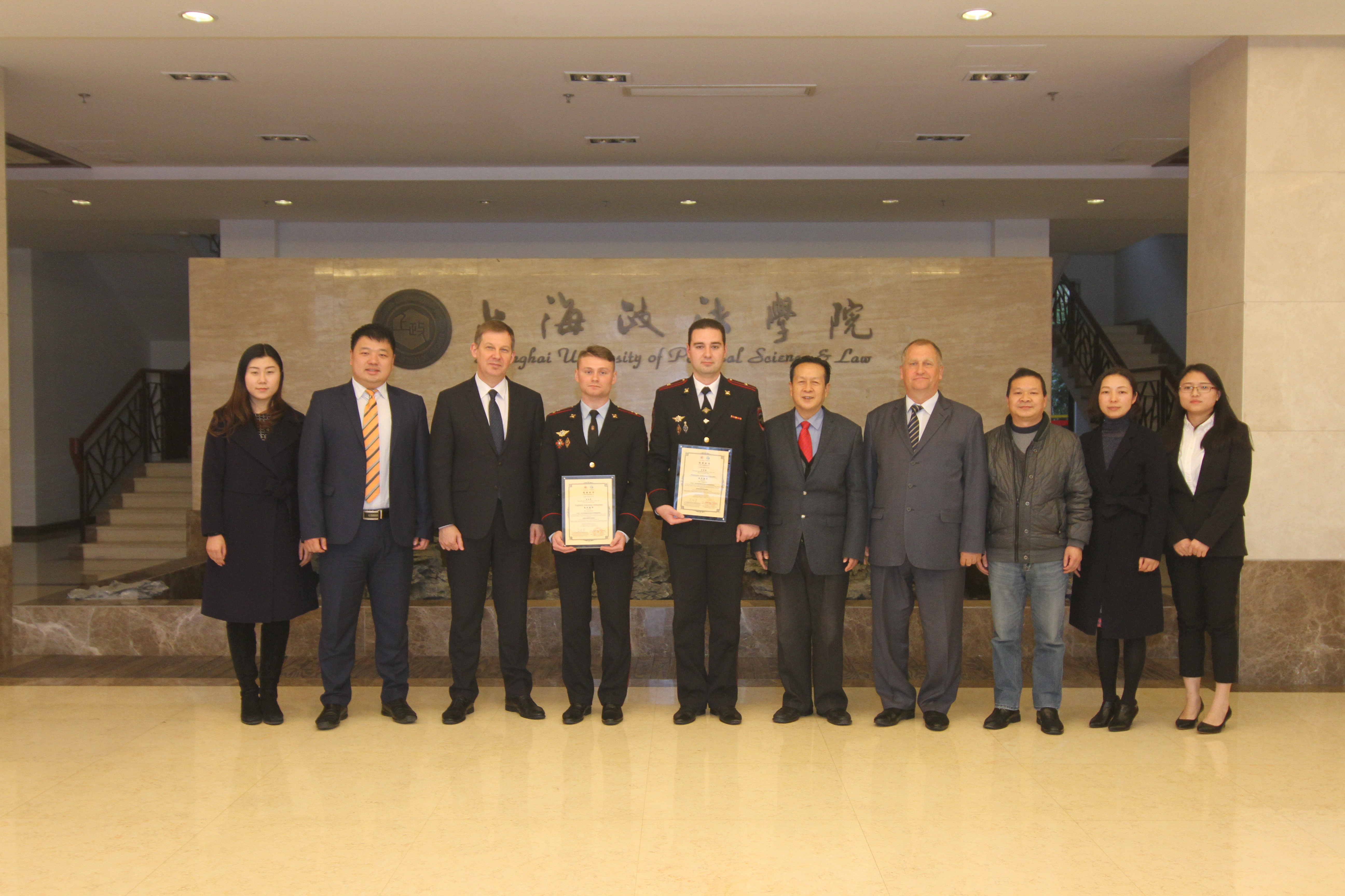 最后,关保英代表上海政法学院、中国-上海合作组织国际司法交流合作培训基地对索洛维约夫、葛金诺的到来表示诚挚欢迎,对两位学员完成学习顺利结业表示热烈的祝贺。他表示,两位学员通过一年在上海政法学院、在培训基地的学习,更加了解中国及中华文化,也更加深了中俄两国人民的友谊。他为学校能有这样两位优秀的国际校友而感到骄傲,祝愿两位学员未来的发展前程似锦,祝两国友谊长存,也提前预祝大家新春快乐。