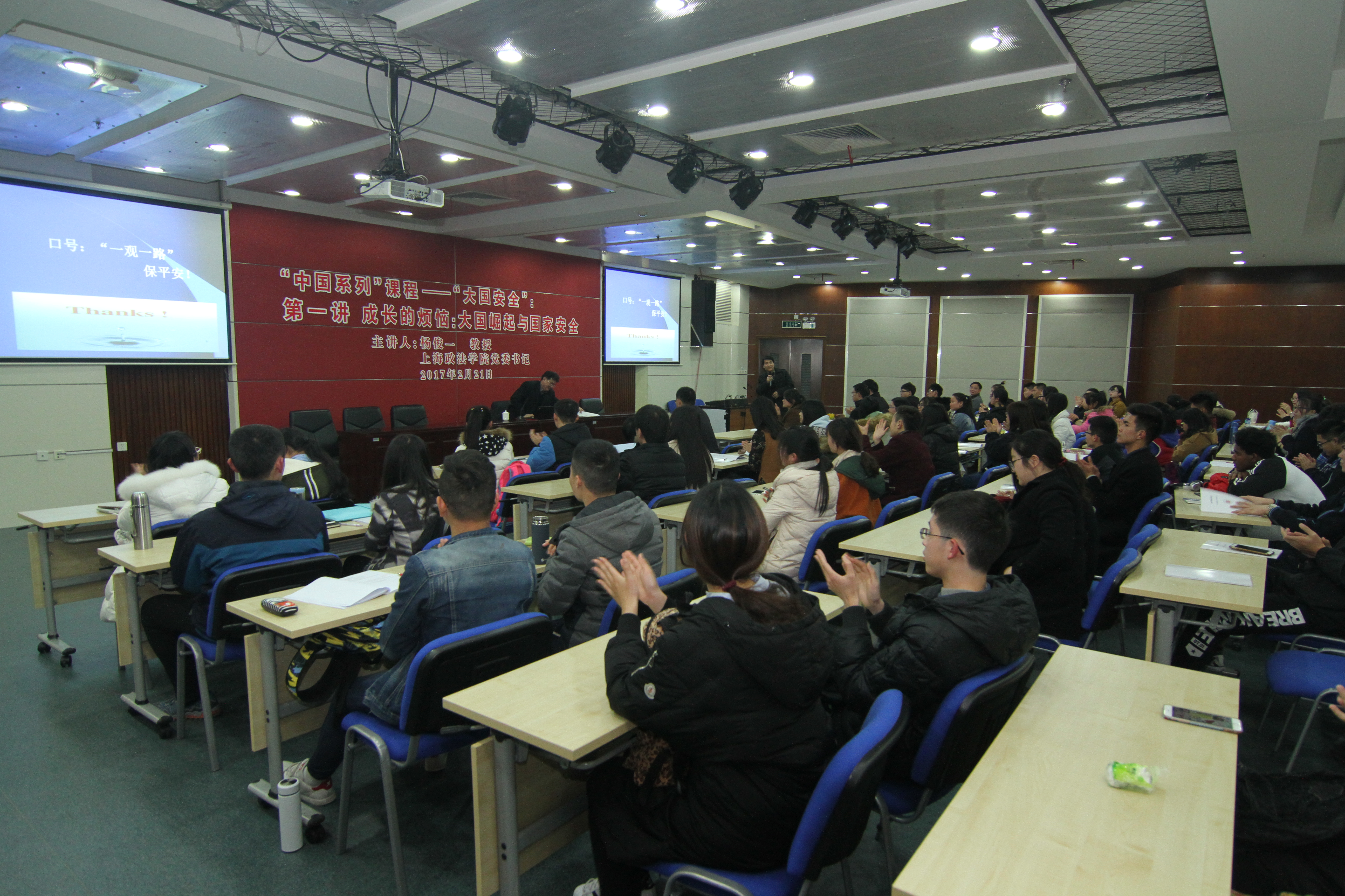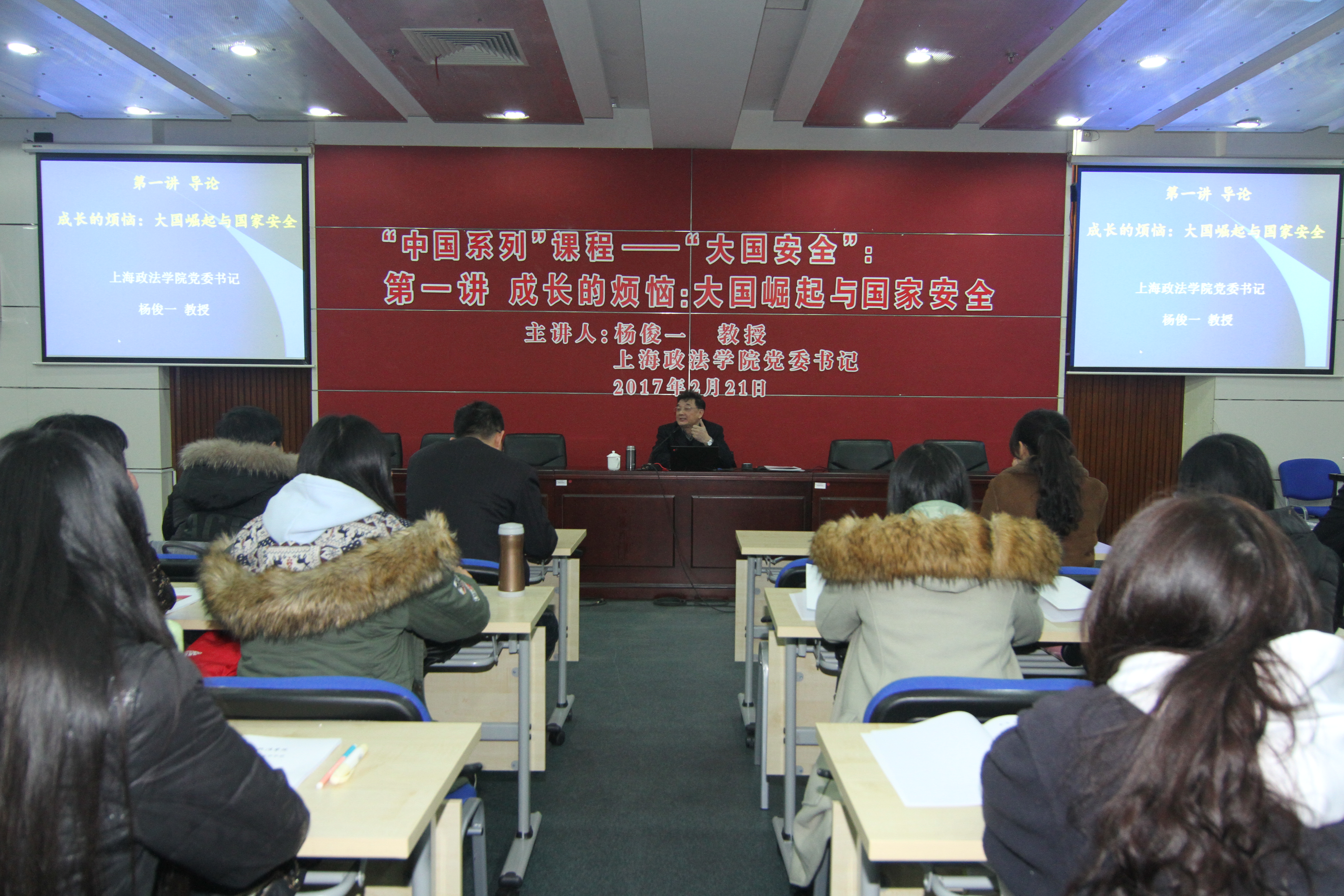 2月21日晚,上海政法学院党委书记杨俊一教授为我校“中国系列”课程——“大国安全”第一课开讲。围绕“成长的烦恼:大国崛起与国家安全”,杨俊一分如下几个方面展开论述:大国与大国安全,总体国家安全观的提出、历史方位、主要内容及落实。