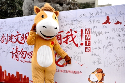 共青团上海政法学院委员会的吉祥物“团团”也出现在现场,和所有青年团员向所有上政人共同呼吁:创建文明健康的校园,有你也有我!吸烟有害健康,请拒绝烟草,对吸烟坚决说不。禁烟从今天开始,从现在开始,让我们消灭扰人的烟雾,从我做起。(张秋瑜撰稿 翟贝尔、白亮、何欢摄影)