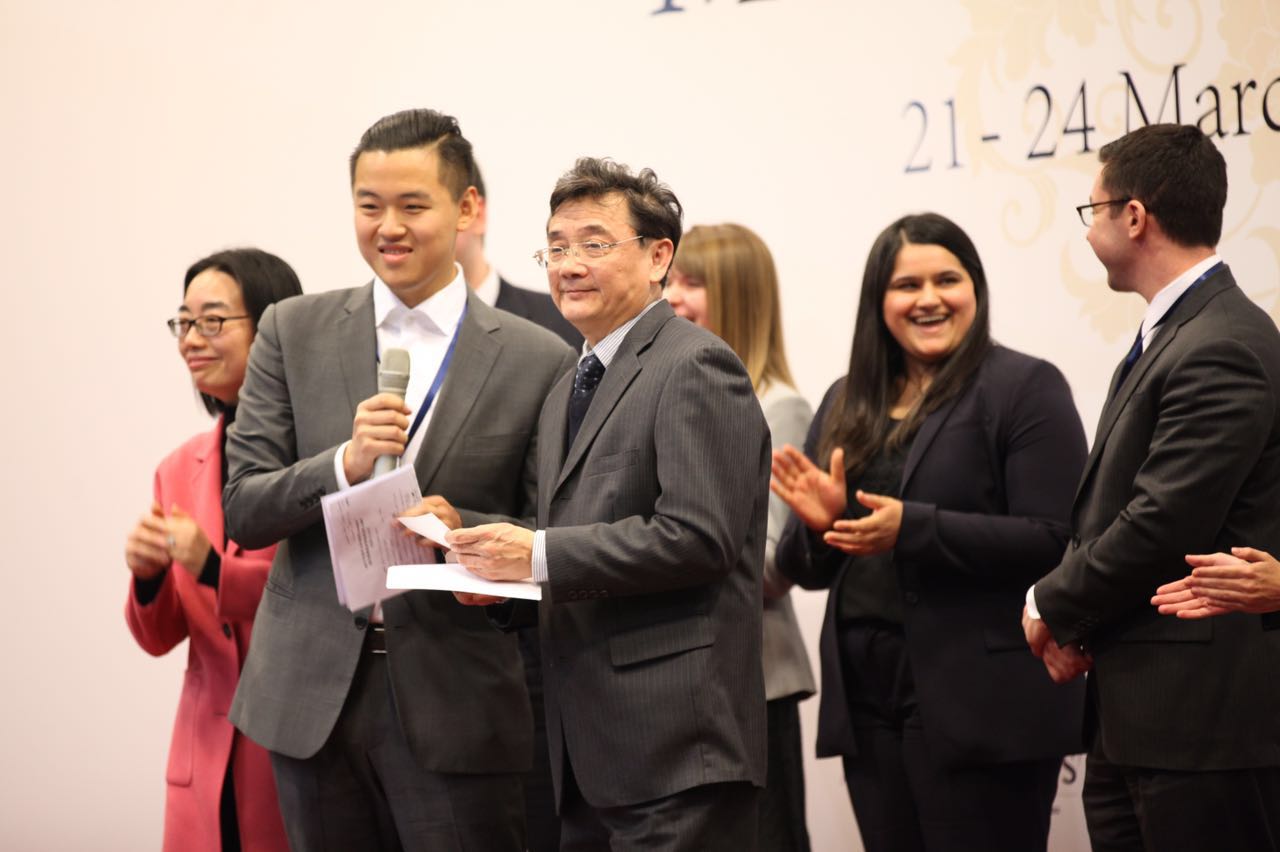 3月24日下午,第七届“Moot Shanghai”国际模拟商事仲裁上海邀请赛决赛暨闭幕式在世博会中国馆举行,组委会精心挑选了这一极具东方魅力的场馆举行巅峰之战用意深远,旨在促进东西方文化交流,向全世界法学精英展现中国别具风情之大美。上海政法学院党委书记杨俊一教授、国际法学院党总支书记朱和平出席了本次闭幕式。杨俊一应邀为冠军队伍颁奖,并为本次闭幕式致辞。杨俊一指出,上海政法学院作为一所致力于培养真正能够满足社会需要的法律人才的高等学府,愿意协同各合作方与来自世界各地的法律人进行更广泛深入的交流。