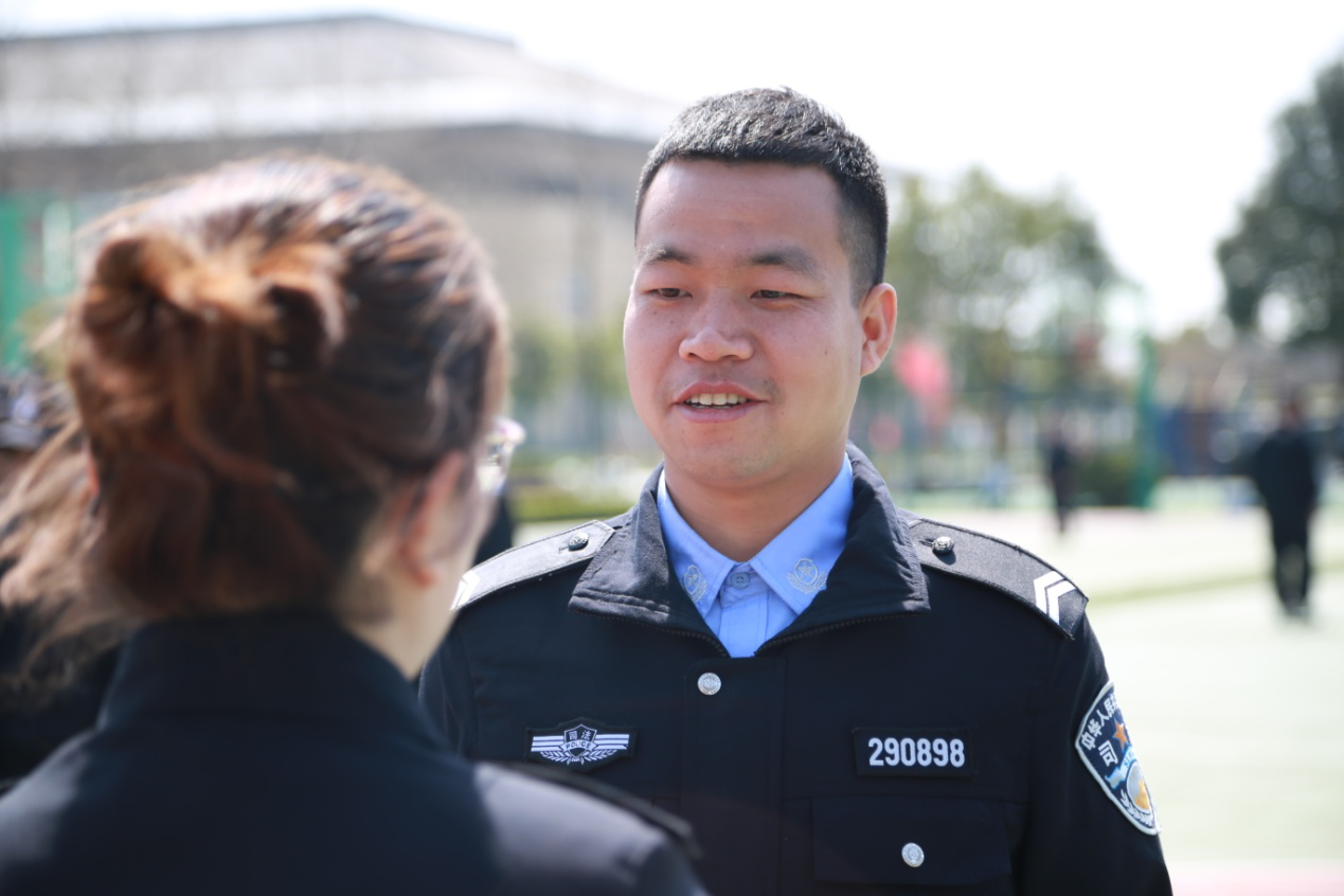 “作为副中队长,我负责新干警们的接待工作,包括报道和住宿等各项事宜,严抓纪律作风、礼节礼貌和请假销假等问题,并配合总教官维持大局秩序。”