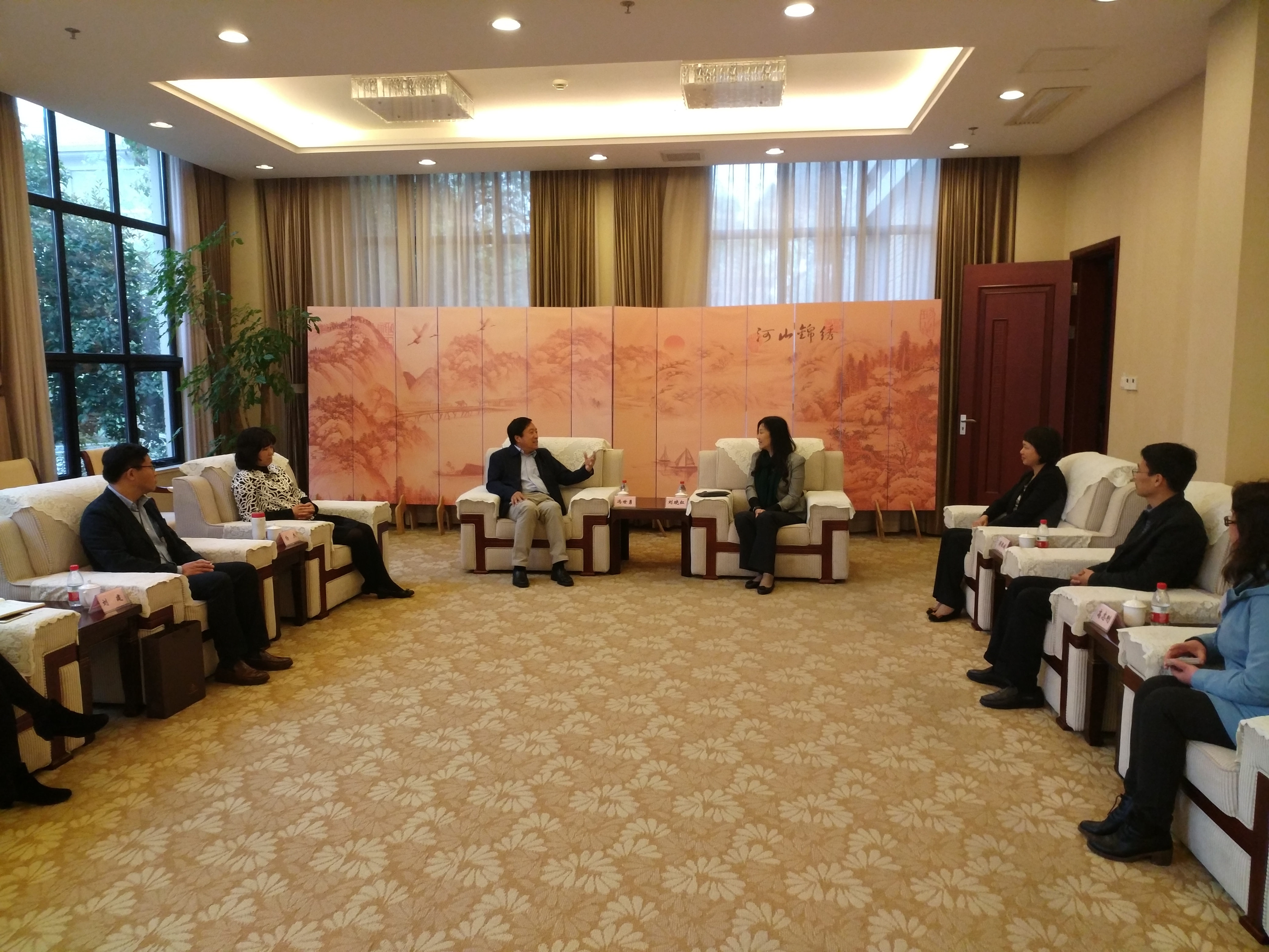 4月6日下午,为加强交流、深化合作,中国政法大学党委常委、副校长冯世勇一行来我校考察交流。校长刘晓红在综合研究中心会见了客人一行。校党委副书记、副校长周银娥,中国政法大学校友工作办、国内合作处及我校党办校办、基建办、合作发展处、图书馆、法律学院、刑事司法学院、文学与传媒学院等相关职能部门及学院负责人等参与了相关活动并交流座谈。