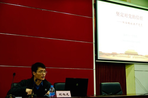 典礼结束后,马克思主义学院刘旭光老师以《坚定对共产党的信任,做合格的共产党员》为主题对同学们进行授课。(胡爱军撰稿 吴德志、王栋、丁杰摄影 )