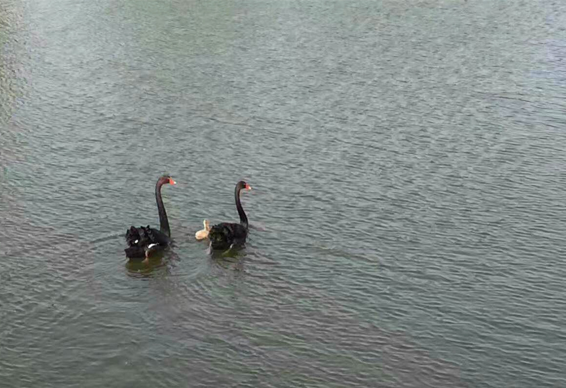 黑天鹅夫妇依伴经年,终在繁花似锦的季节迎来了新生命。而这个小生命也带着“浜大”师生们的星星祝福,相随长久。