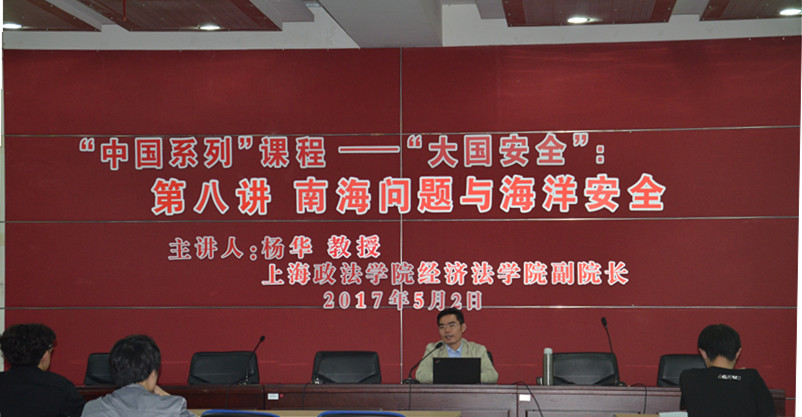 5月2日,经济法学院副院长杨华教授围绕“南海问题与海洋安全”主题为《大国安全》课程做讲座,马克思主义学院副院长徐世甫教授主持讲座与互动。