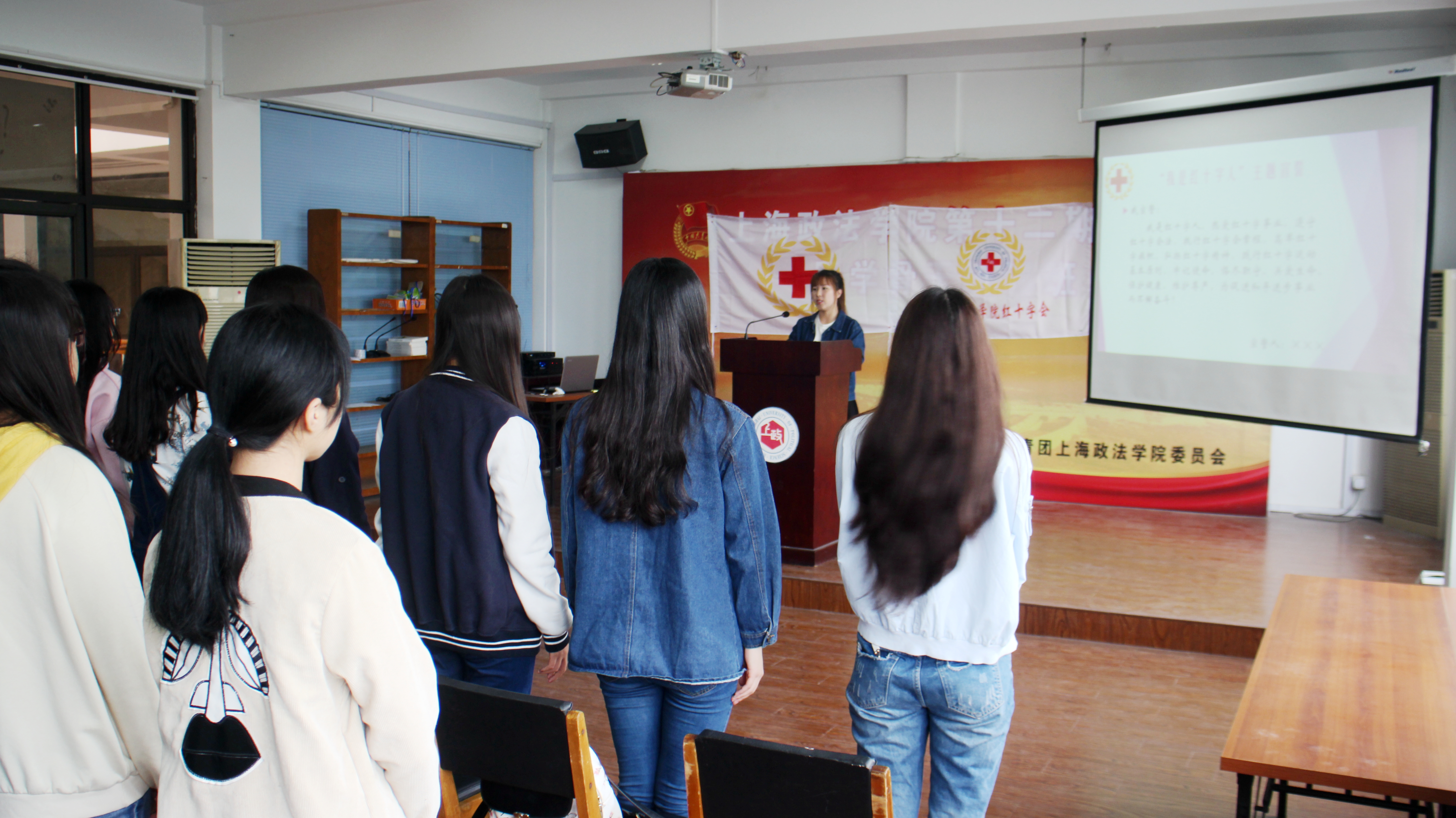 所有的上政红十字人面向红十字旗庄严宣誓。“我是红十字人……关爱生命,保护健康,维护尊严,为促进和平进步事业而不懈奋斗!”