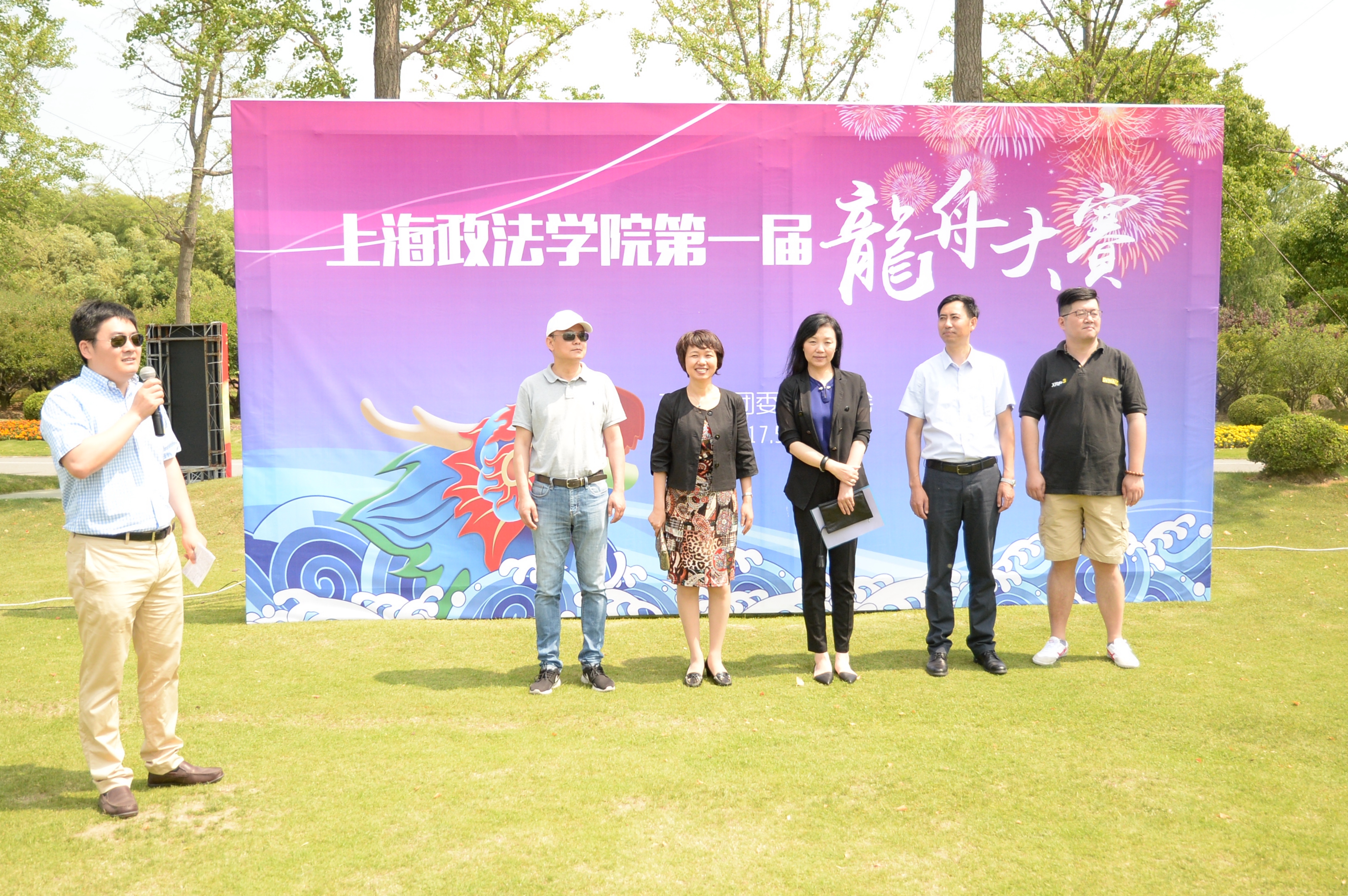 在传统节日端午佳节到来前夕,为弘扬中华优秀传统文化,丰富校园生活,5月20日上午,我校第一届龙舟大赛在东方绿舟龙舟湖举行。由各二级学院、机关工会负责人率领的16支参赛队伍和啦啦队近500名师生共聚东方绿舟,体验了一场精彩纷呈的龙舟大赛。校长刘晓红,党委副书记、副校长周银娥,校工会常务副主席周毅,东方绿舟党总支副书记、副主任朱超,校团委书记陆嵬参加了开幕式并观看了比赛。开幕式由校团委副书记孙留华主持。