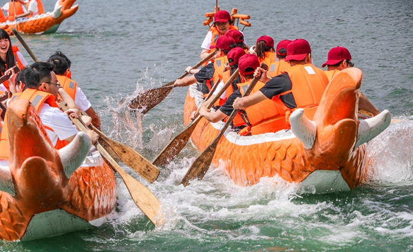 本次师生龙舟大赛的举办,传承和弘扬了中华民族传统文化,为广大师生搭建了互动交流平台,也展现了我校师生团结拼搏、勇往直前的良好精神风貌。(孙文逸撰稿 翟贝尔、张峥言、唐笑语等摄影)