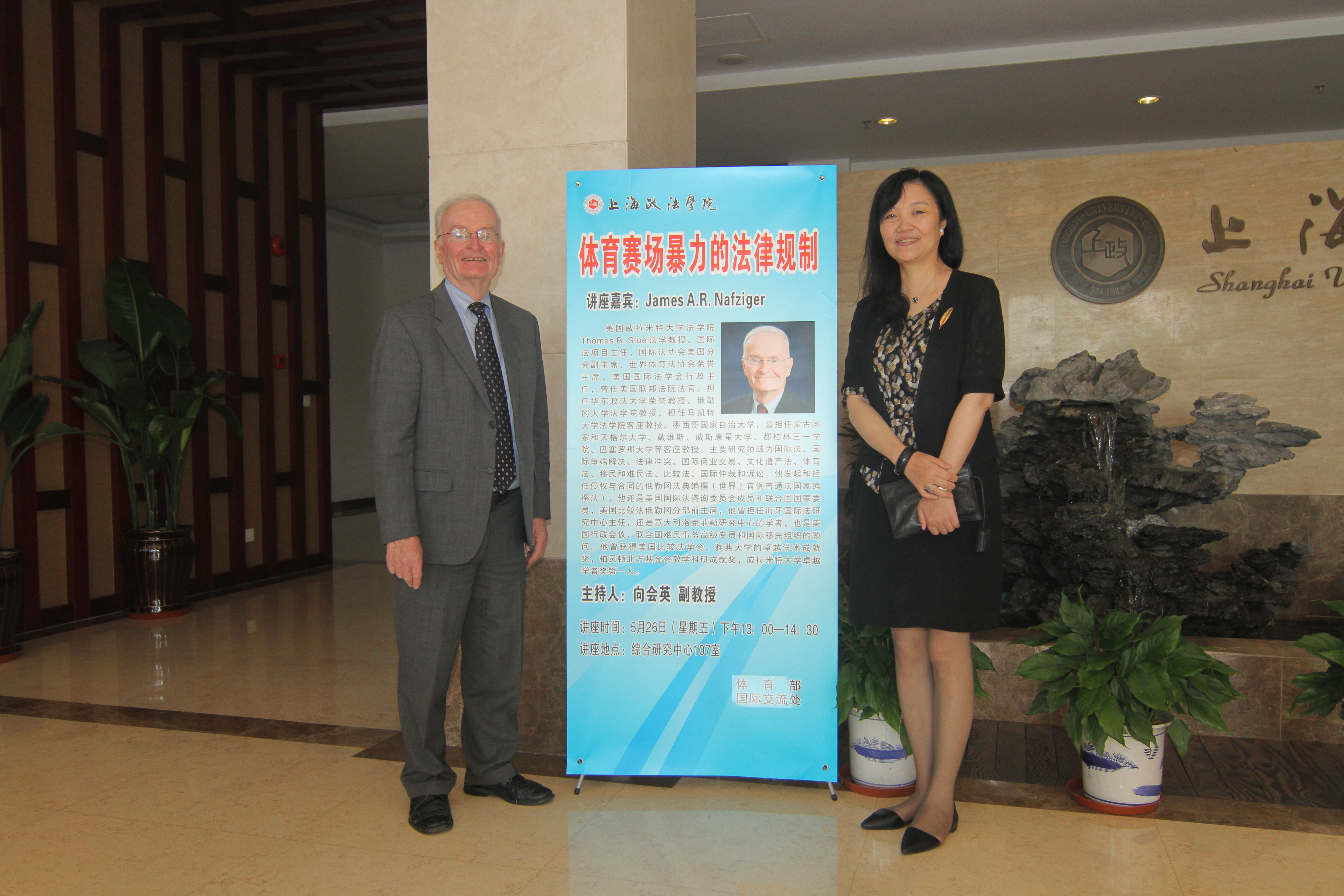 5月26日,应国际交流处、体育部邀请,美国威拉米特大学法学院国际法项目主任、国际法协会美国分会副主席、世界体育法协会荣誉主席、美国国际法学会行政主任James A.R. Nafziger教授到访我校,并举办学术讲座。当天上午,刘晓红校长亲切会见了Nafziger,国际交流处张正怡副处长、体育部向会英副教授等参加会见。