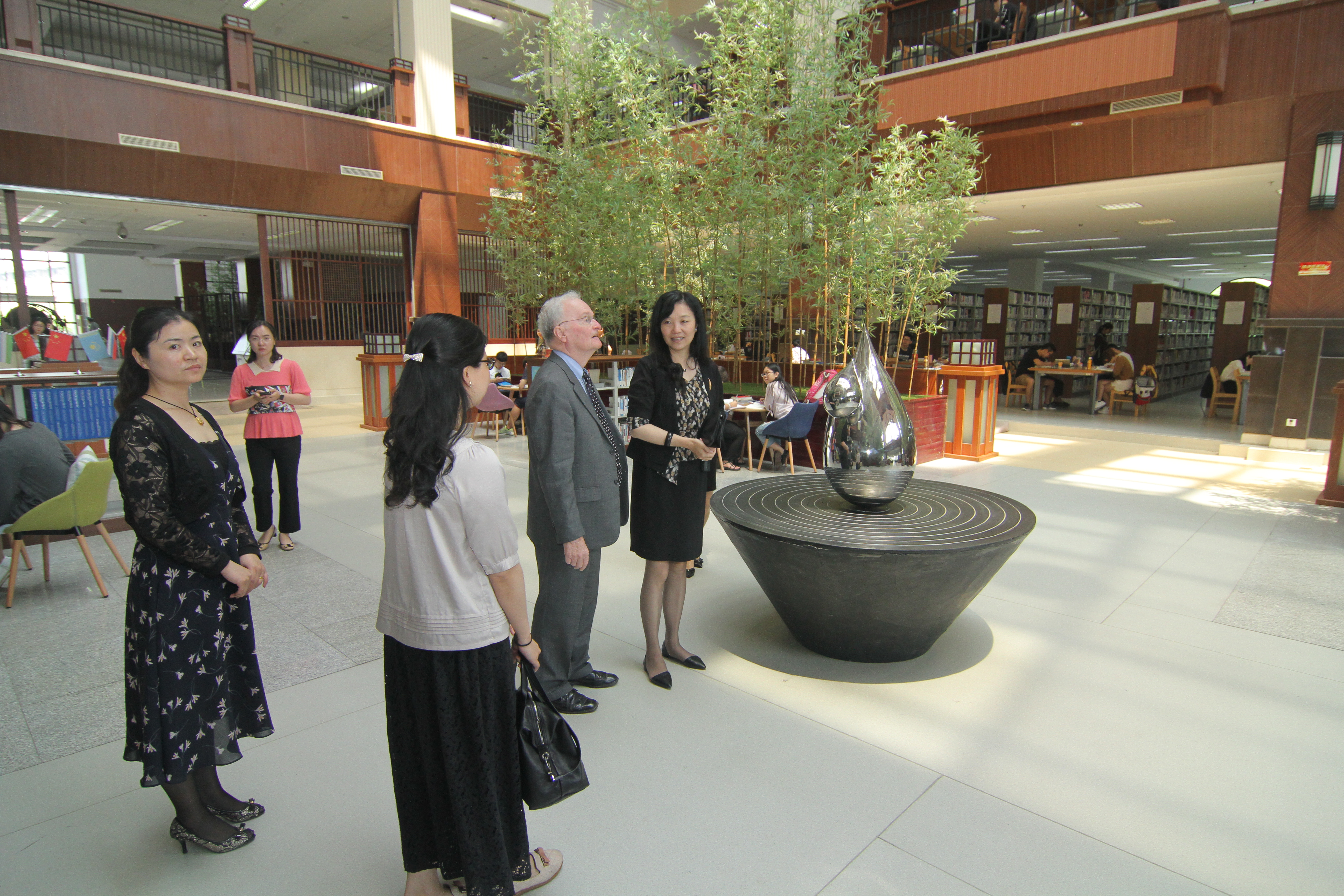 会见后,刘晓红一行陪同Nafziger参观了我校图文信息中心、模拟法庭。
