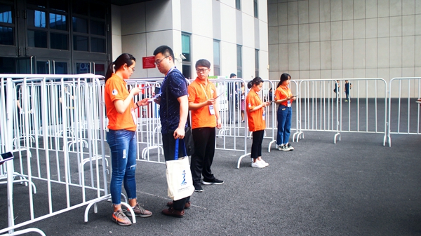本次活动中,我校志愿者被安排在会场管理组、路线指引组、展区服务台、媒体宣传组等,分别负责不同的工作。会场管理组的志愿者在主会场协助开幕式的彩排和筹备,出色地完成了任务,保障开幕式的顺利举办,并协助后台播放PPT、控制音响和协助同声传译;分会场管理组的志愿者在每个会场门口为参会人员扫码注册,协助会场演讲工作;指引组的志愿者在室外引导参会人员进入会场,为每一位前来参展的嘉宾指路引路。服务第一天在烈日炎炎下坚持站着,第二天又冒雨引路,他们风雨无阻,一直坚守在自己的工作岗位;展区服务台的志愿者负责参展单位报道、发放资料、解答询问,他们热情地为每一位展商告知情况、发放资料;媒体宣传组的志愿者负责展板的拍摄和新闻稿撰写、会议的跟踪拍摄、指定展台的讲解等。
