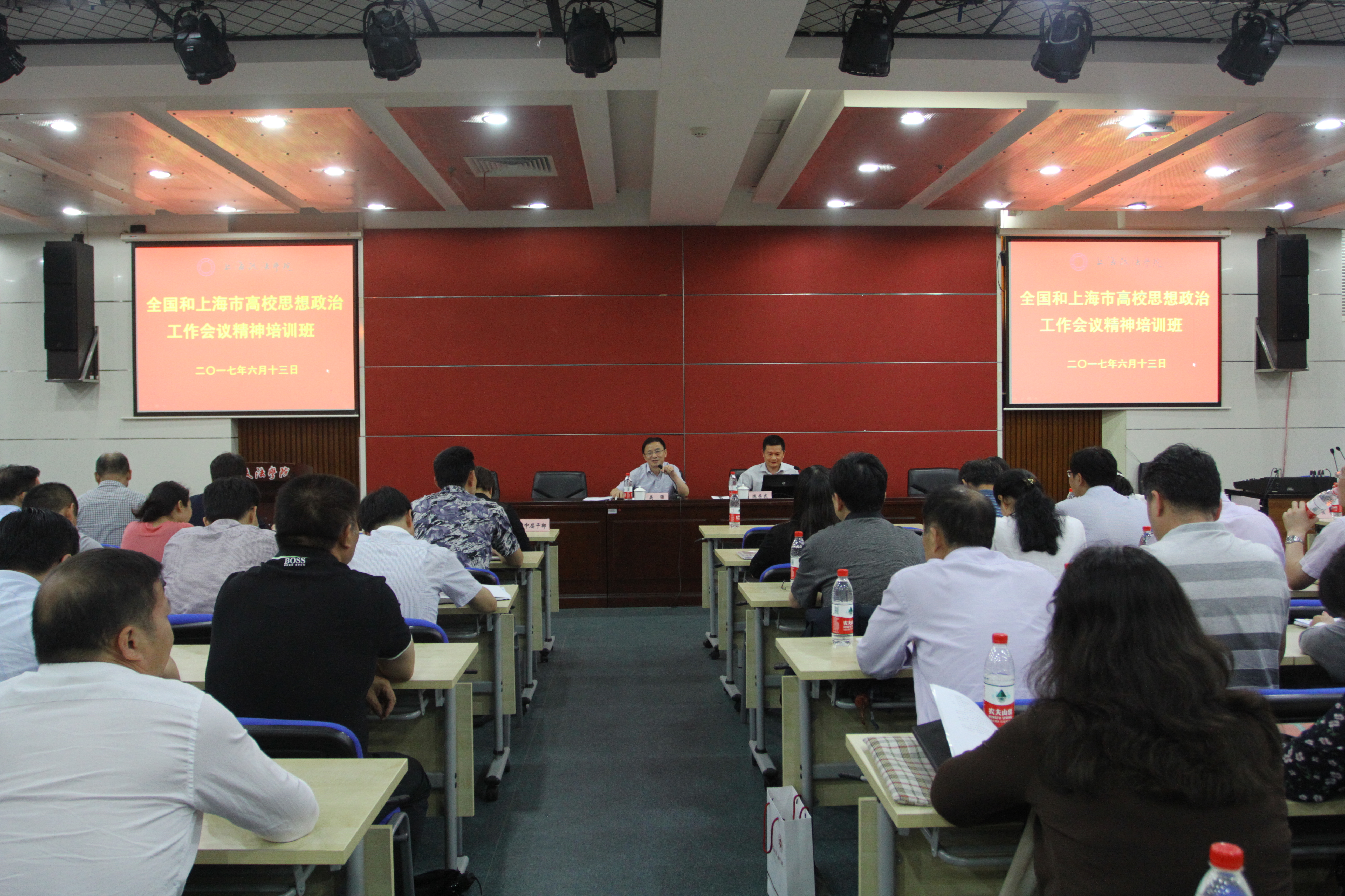6月13日下午,全国和上海市高校思想政治工作会议精神培训班在庸夫楼101会议室举行。培训班邀请上海市委党校第四分校基层党建创新研究中心主任陈荣武教授,上海市教卫工作党委委员、宣传处处长曹荣瑞专题报告。校党委副书记、纪委书记吴强,校党委副书记、副校长周银娥出席会议,全体中层干部、教工党支部书记、思政课教师和辅导员参加会议。会议由吴强主持。