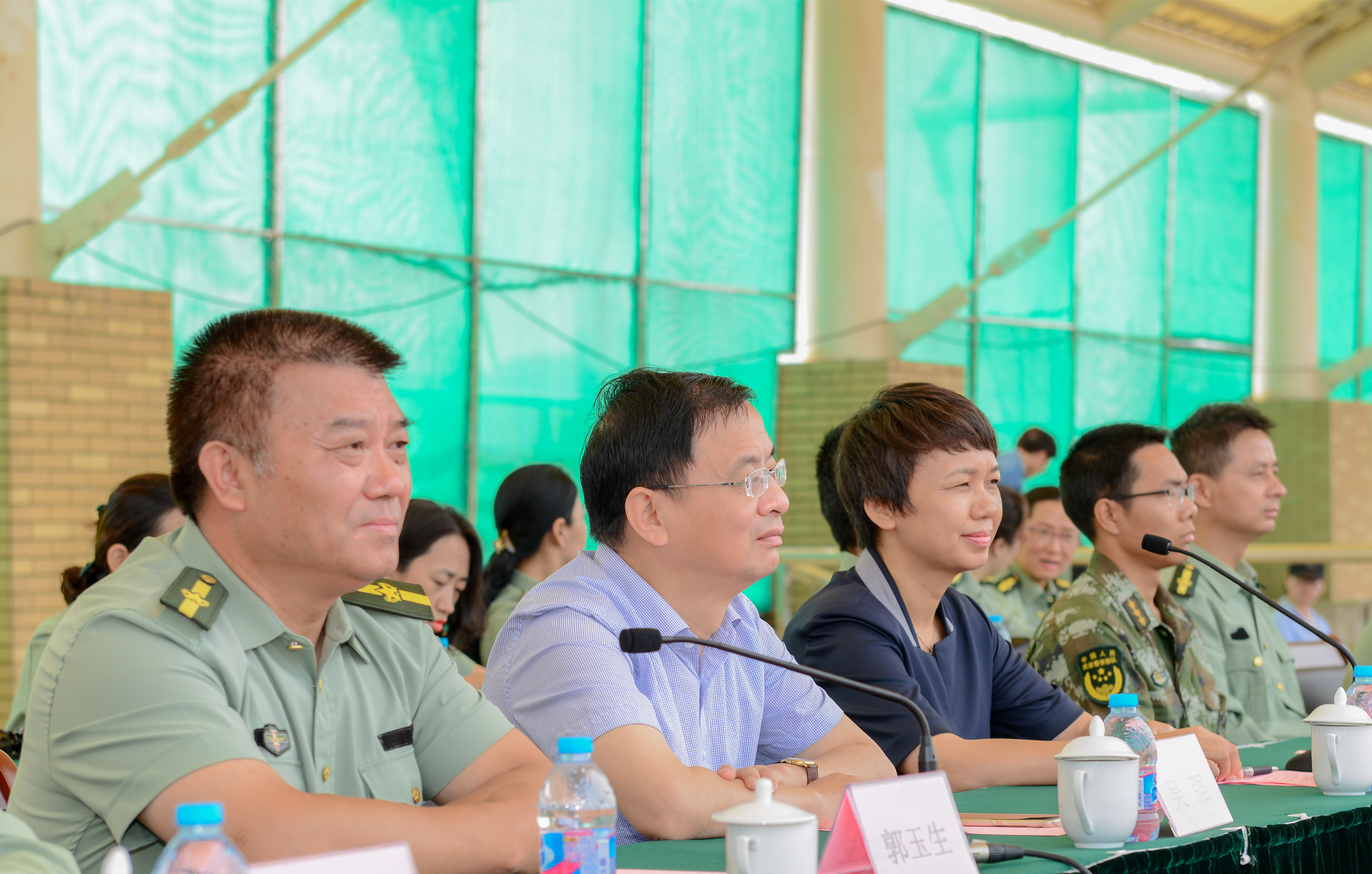 入营式上,吴强向军训团授旗。周银娥对本次军训提出具体期望和要求,希望同学们做到思想上高度重视,行动上雷厉风行;也希望武警教官严格要求,严格管理;同时,要求各职能部门、学院和全体带训辅导员,要密切配合,确保军训安全、顺利实施。