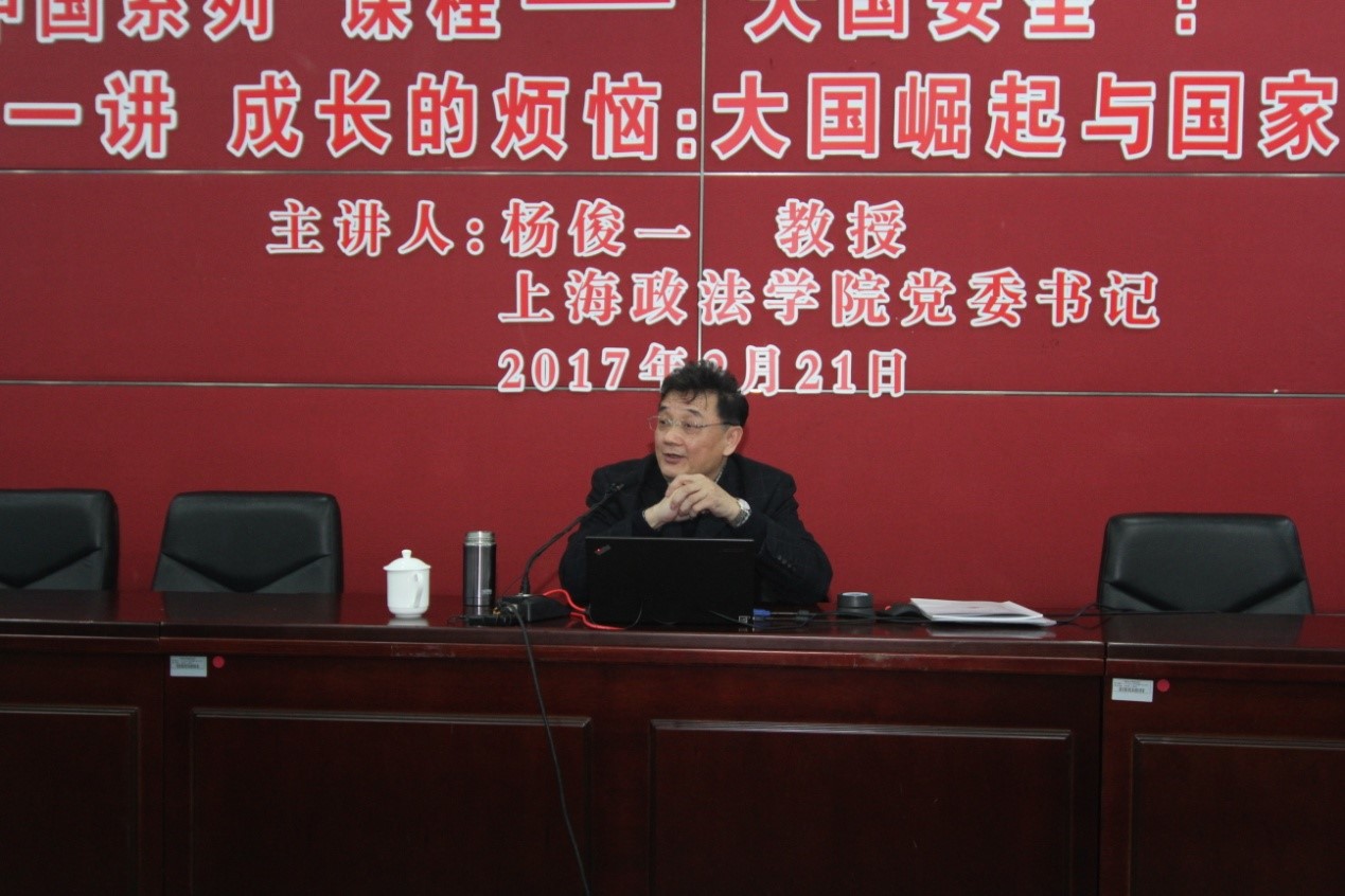 2017年2月21日晚,上海政法学院党委书记杨俊一教授以“成长的烦恼:大国崛起与国家安全”为主题,讲授《大国安全》第一课。
