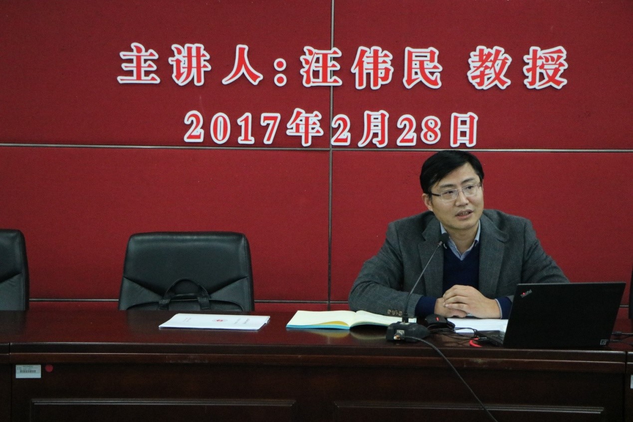 2017年2月28日晚,上海政法学院国际事务与公共管理学院院长、中国-上海合作组织国际司法交流合作培训基地管委会秘书处副秘书长汪伟民教授以“全球安全再平衡:大国崛起及其安全战略选择”为主题,讲授《大国安全》第二课,马克思主义学院副院长徐世甫教授主持现场互动。