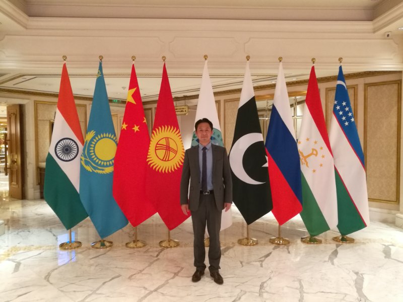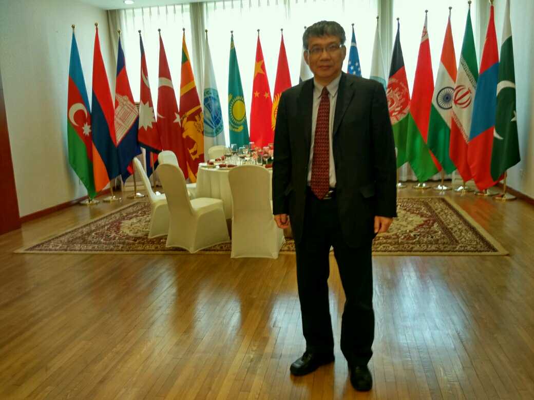 2017年3月28日晚,上海政法学院中国-上海合作组织国际司法交流合作培训基地管委会副主任、国际交流处处长王蔚教授以“构建人类命运共同体”为主题,讲授《大国安全》第五课,马克思主义学院副院长徐世甫教授现场主持互动。