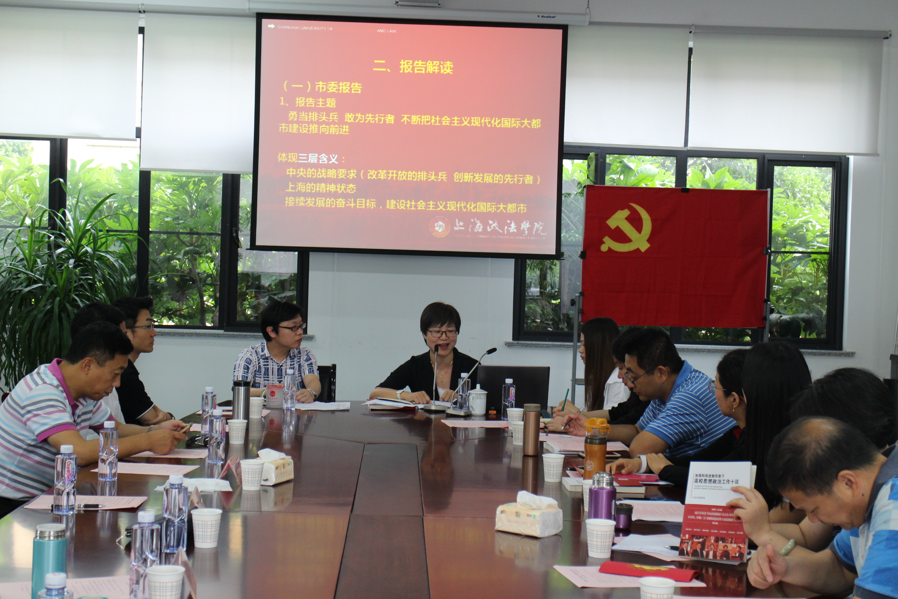 最后,校党委组织部部长王静老师对本次活动做了点评,她肯定了集体生日活动的意义,并勉励党员教师要岗位建功,争做“四有”好老师。作为党代表,王老师为大家做了题为“参加市十一次党代会的见闻与体会”的主题报告。她结合参加党代会的经历,介绍会议概况,解读报告精神,阐述学习体会,要求各位党员认真学习贯彻市党代会精神,提高政治站位,坚持共产党人价值观,不断提高自身能力素质,努力为上海培养更多德才兼备的法律人才。
