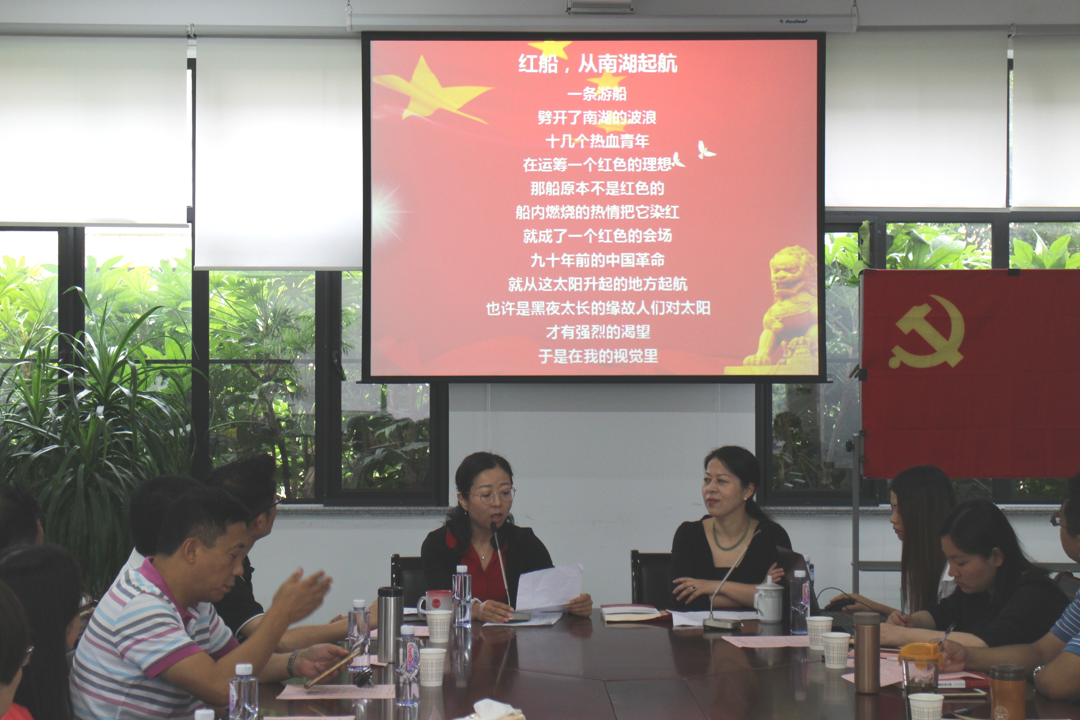 作为我校迎“七一”系列庆祝活动之一的首个主题党日活动,受到了组织部和其他学院党总支的支持和关注,经过前期的精心组织和安排,活动取得了良好效果。主题党日活动在庄严的《国歌》中拉开了序幕,在座全体党员起立共唱国歌。在当党的96周年生日之际,为不忘初心,会上举行了宣誓仪式,全体党员再次面对鲜红的党旗,庄严地举起右手,重温对党的誓言。本次活动的重头戏是为党龄逢5、逢10的6位党员教师集体过政治生日,在座的领导、书记为过生日的党员颁发了生日礼物:政治生日贺卡和《加强和改进新形势下高校思想政治工作十谈》的书籍。6位党员分别从不同角度分享了入党后的成长经历、心路历程与岗位收获。其中,王燕老师还声情并茂地朗诵了红色经典诗歌,感动了在场的每一位党员。