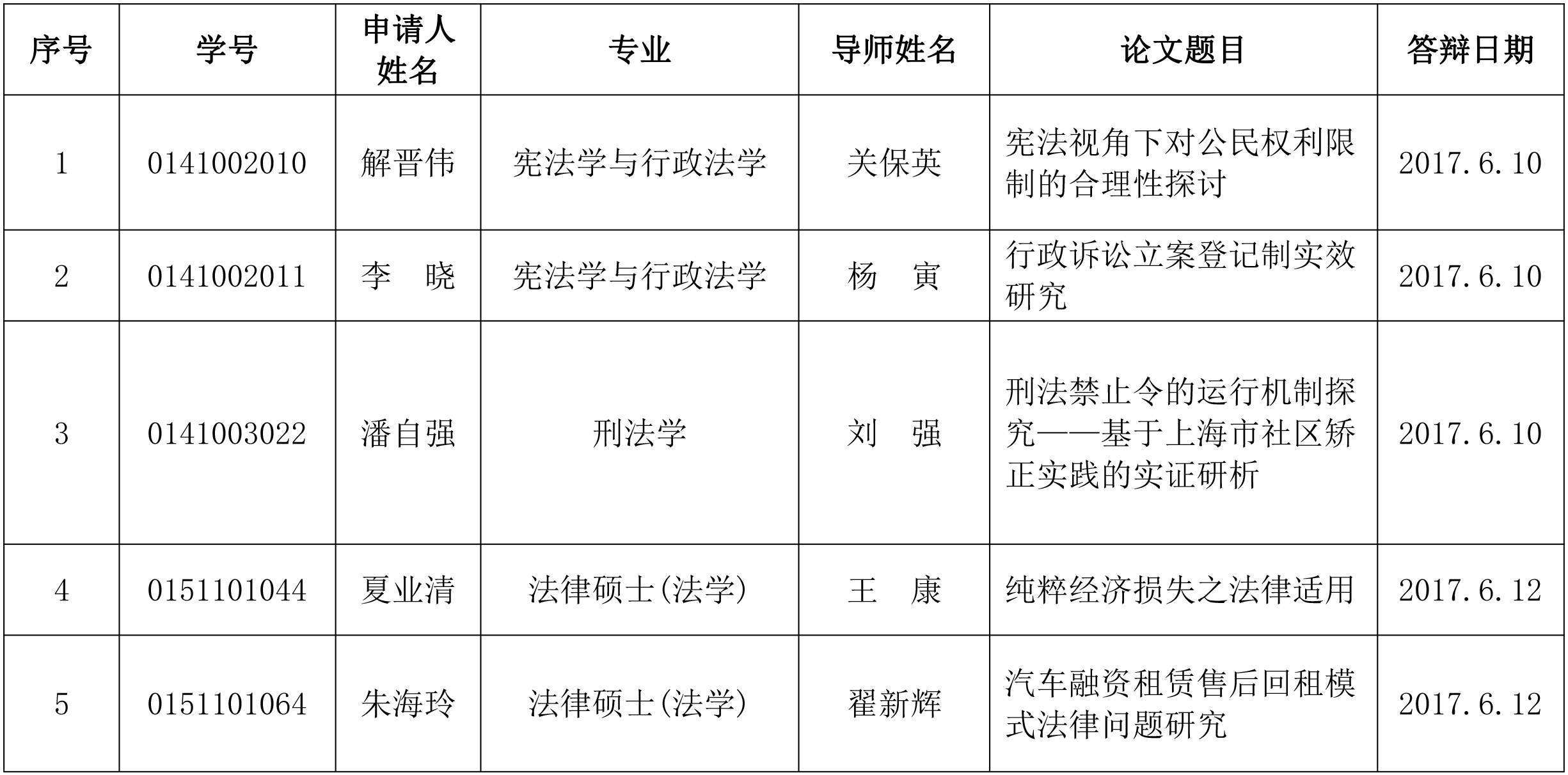 经学术不端行为检测、上海市论文盲审抽检、研究生在读期间科研情况考核、学位论文评阅、学位论文答辩等环节,由本人申请、校内外论文评阅专家和论文答辩委员会推荐,校学位评定委员会审核和投票表决,以下5篇论文获评2017年上海政法学院优秀硕士学位论文: