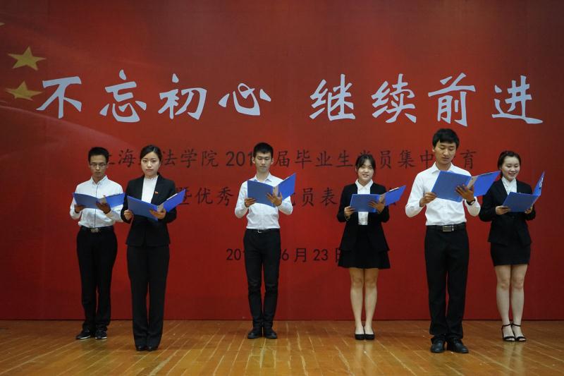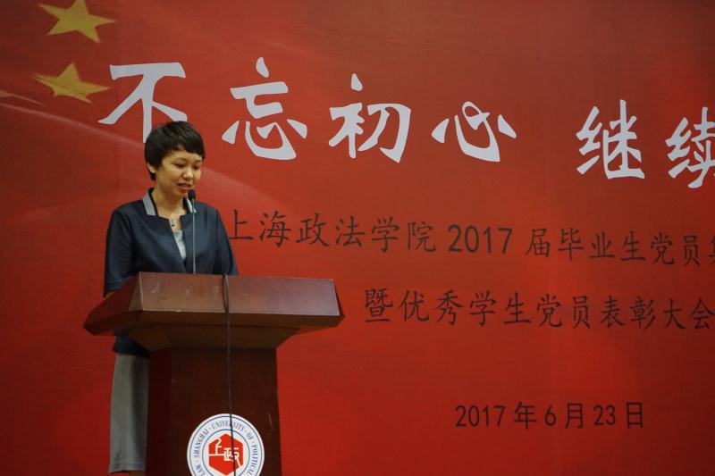为了庆祝中国共产党成立96周年,迎接党的十九大胜利召开,结合“两学一做”具体要求,引导毕业生党员时刻不忘自己的党员身份,不断提升党性修养,进一步坚定理想信念。6月23日下午,校学工部在庸夫楼218礼堂隆重举行了上海政法学院2017届毕业生党员集中教育暨优秀学生党员表彰大会。校党委副书记、副校长周银娥,党委组织部、党委宣传部、学生工作部、团委等相关部门负责人,各学院党总支副书记、毕业班辅导员以及全体2017届毕业生党员参加了活动,大会由学工部副部长柯心主持。